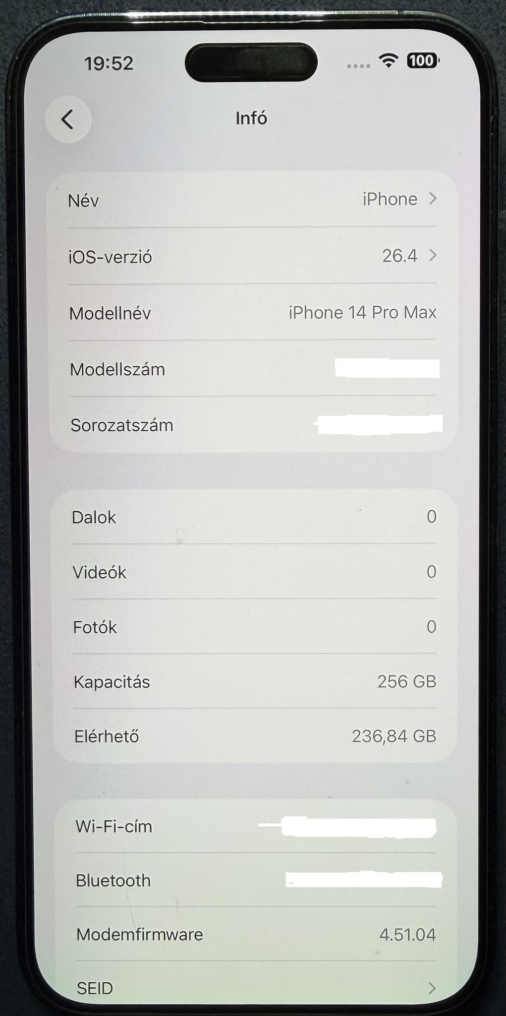 Jelenleg ios 26.4 van a készüléken, amint az a képen is látható.