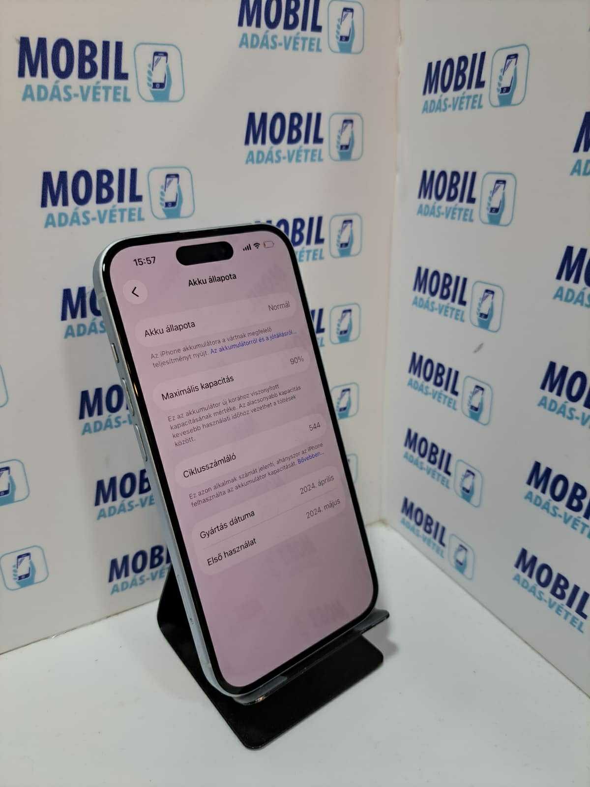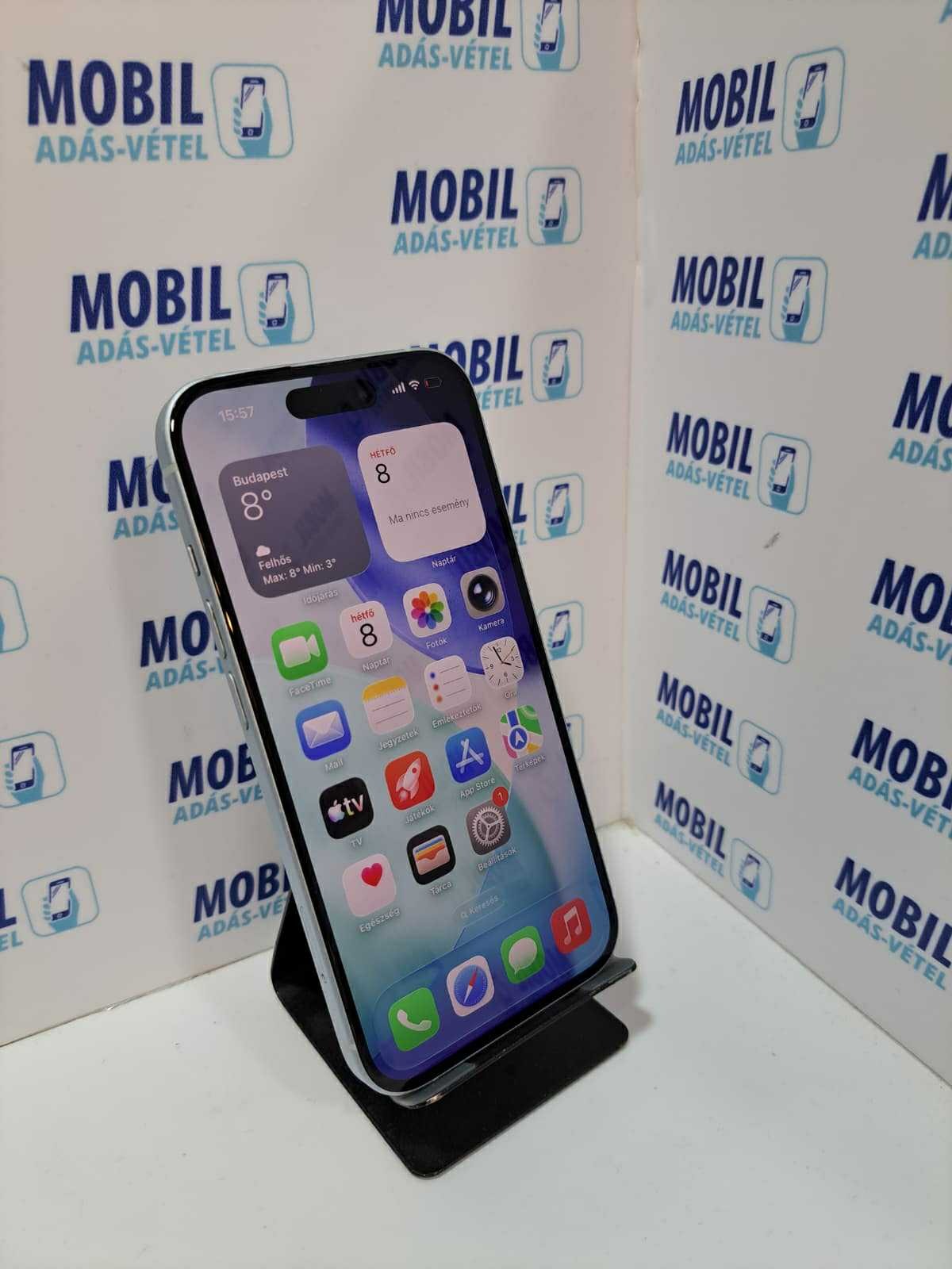 Apple iPhone 15 128GB Akku: 90%, Normál, Kártyafüggetlen, Töltővel, 1 Év Garanciával!