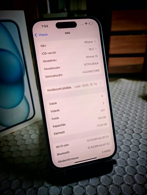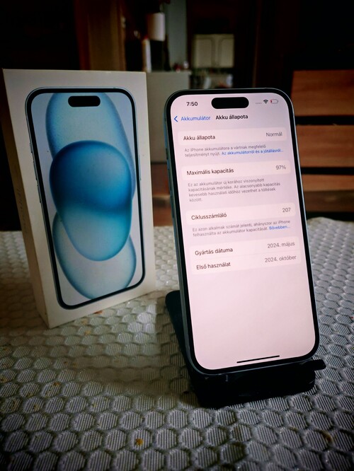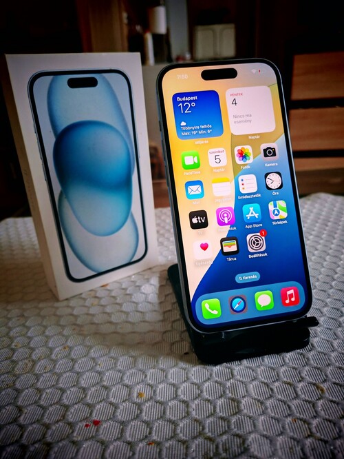 Apple Iphone 15 128GB Blue színben. A telefon gyönyörű, karcmentes állapotú! Gyárilag KÁRTYAFÜGGETLEN! Akkumulátor kapacitasa 97%. Garanciális!!! Minden funkciója hibátlanul működik! Bontva, szerelve sosem volt! Minden gyári tartozékkal, Igény szerint tokkal adom!