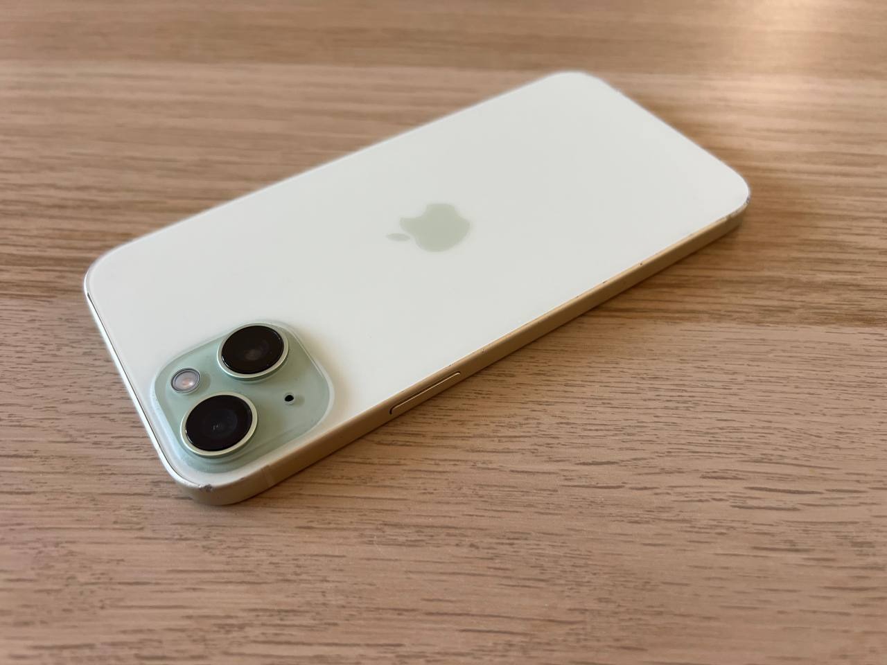 Eladó a képeken látható, zöld színű Apple iPhone 15 Plus típusú kártyafüggetlen telefon.