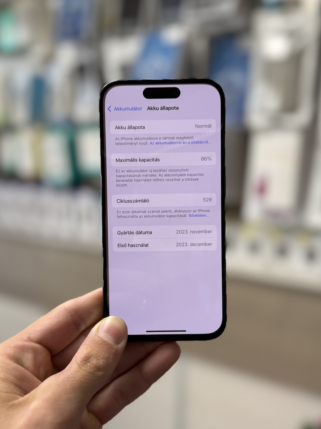 Apple iPhone 15 Pro 128GB 86%-os akku