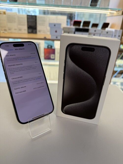 Apple Iphone 15 Pro 128GB Black Titanium 2626.09.22 Garancia 96% Akku ,szép állapot!