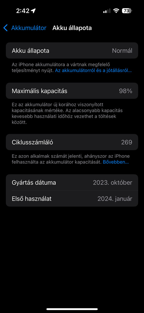 Akku állapota: 98%.
