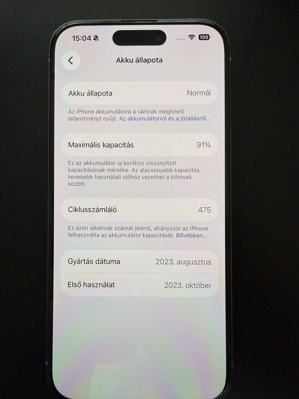 Apple iPhone 15 Pro 128GB Natural Titanium, 91% akku, garanciával, karcmentes
