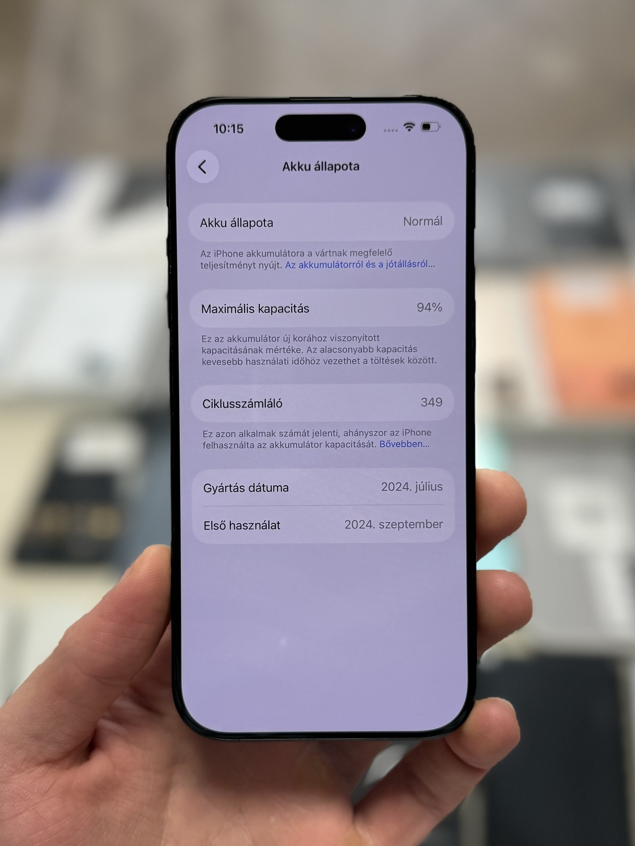 🔋 94% / 349 ciklus