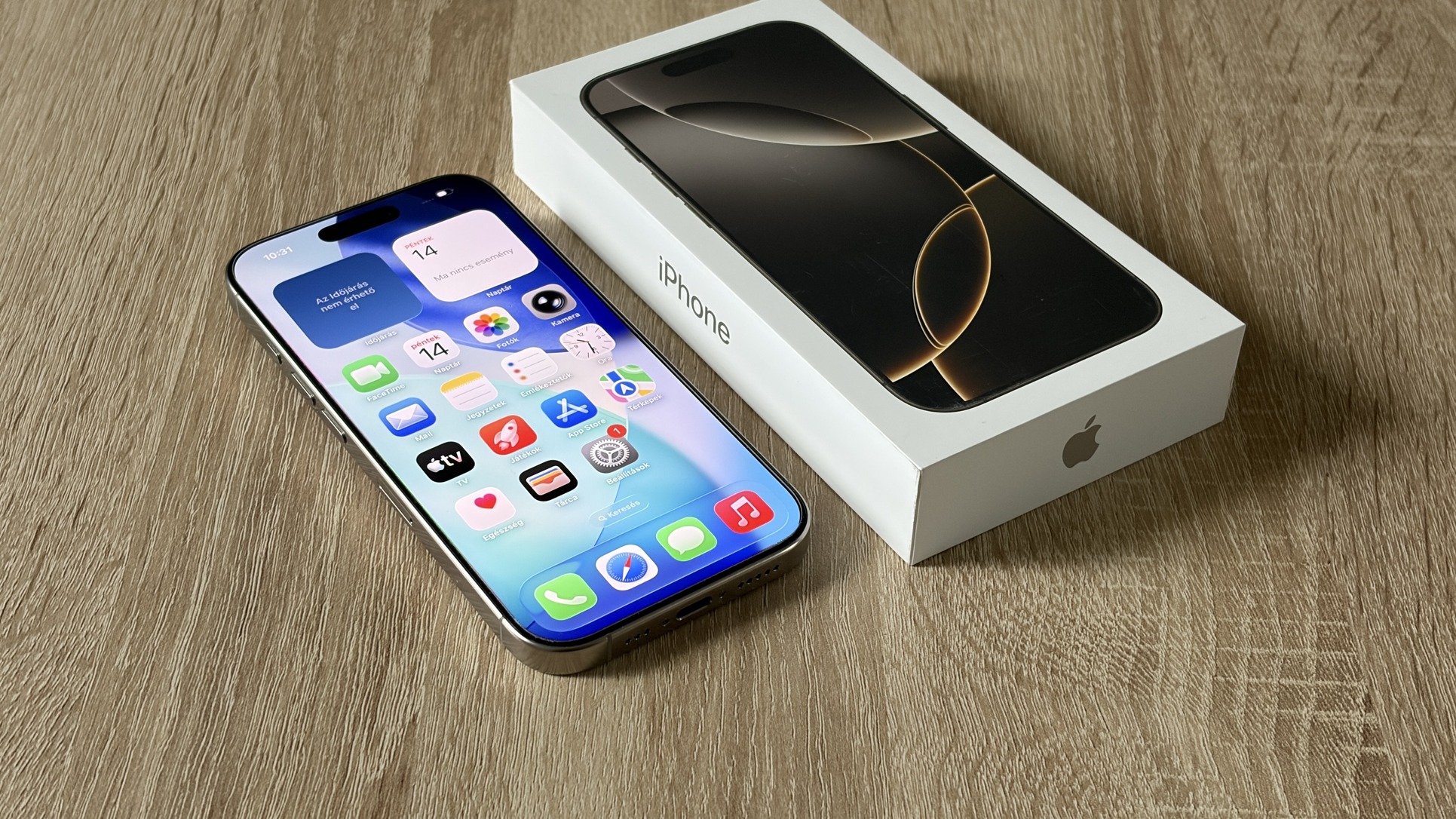 Eladó egy nagyon szép, mikrokarcmentes, makulátlan állapotú Natúr Titán 16 Pro, 256 GB-os tárhellyel