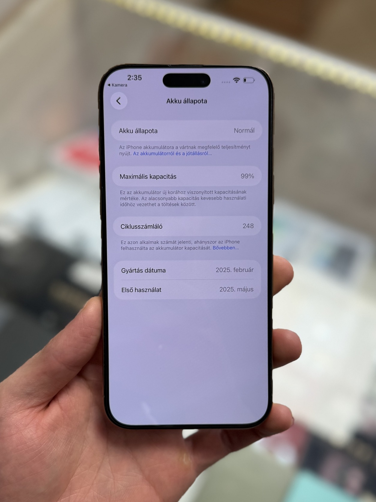 🔋 99% / 248 ciklus