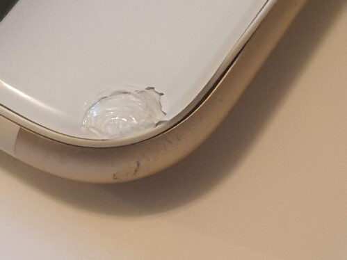A sérülés belső rétegen van és nincs megrepedve, tehát nem érdes, nem karcol, csak ott van.
