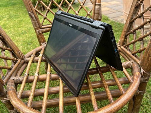 A képernyő teljesen hátrahajtható, így laptopként és tabletként is használható. Ujjal és a gyári ceruzájával is működik, ami megvan és jár hozzá.