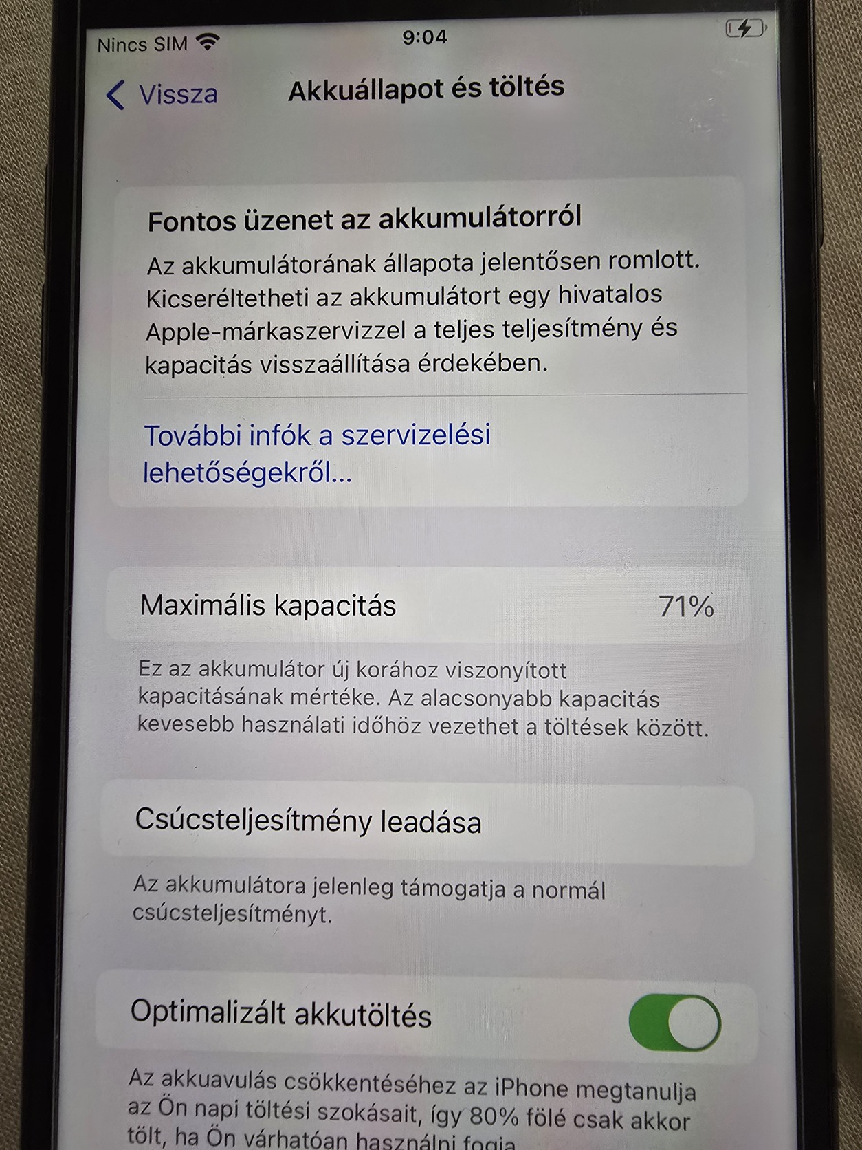 Akkumulátor 71%, idővel cserére szorulhat, de jól használható jelenleg is