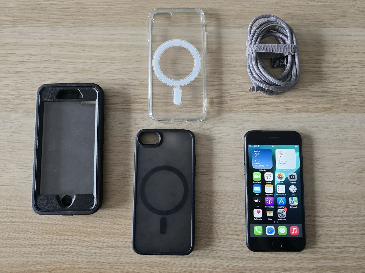 Eladó a képeken látható, fekete színű Apple iPhone SE 2020 kártyafüggetlen telefon.