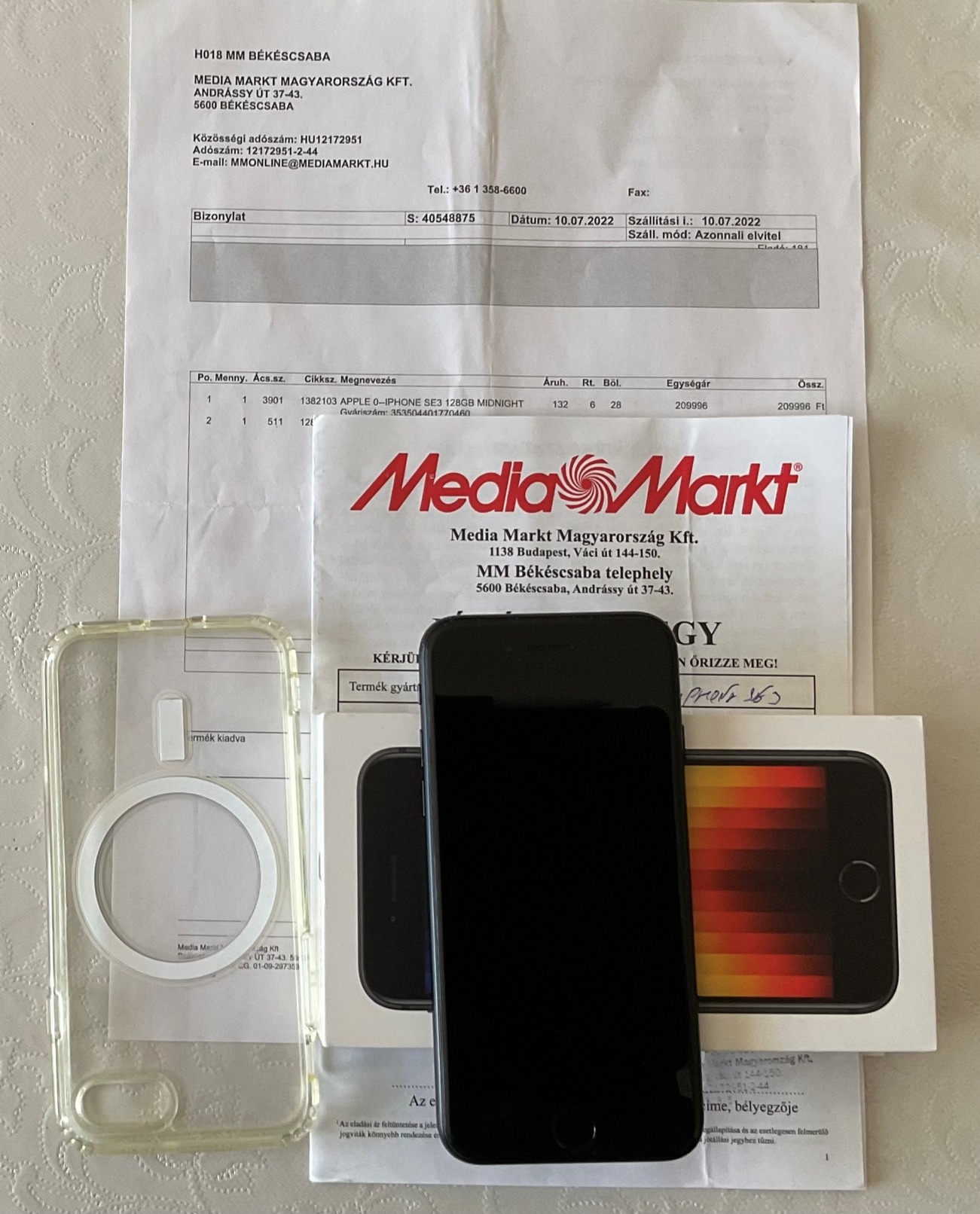 Eladó Apple iPhone SE 2022 128GB összes tartozékával és a gyári dobozával eladó! MEDIA M. vásárlás. Vásárlástól kezdve fóliázva és tokba használva! Soha nem volt javítva, szerelve, hibátlan állapotú. Gyárilag független, műszakilag kifogástalan fekete színű. Akku 89%. Megkímélt állapot, karcmentes hibátlan kijelző, minimális tok kopás.