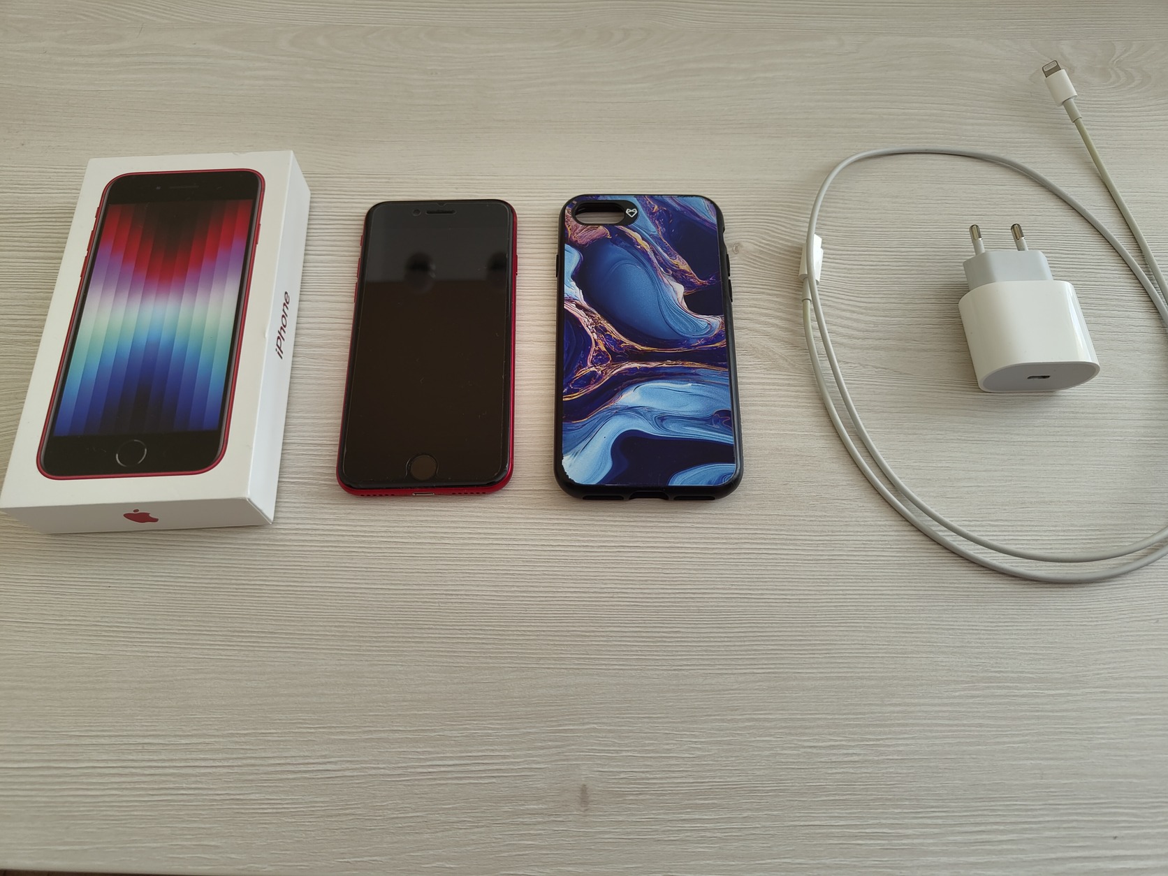 Eladóvá vált kártyafüggetlen Apple iPhone SE (2022) gyári tartozékaival és további kiegészítőkkel.