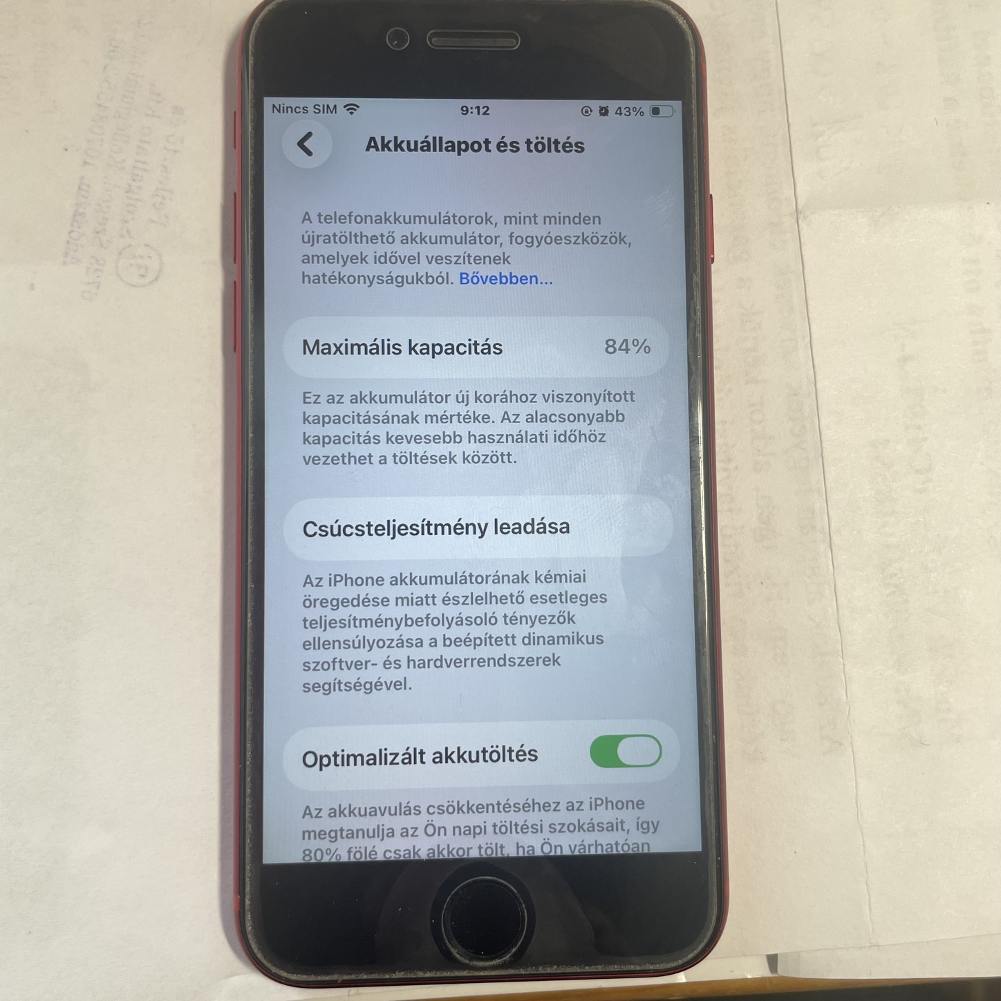 Az akku gyári, jelenlegi állapota 84%.