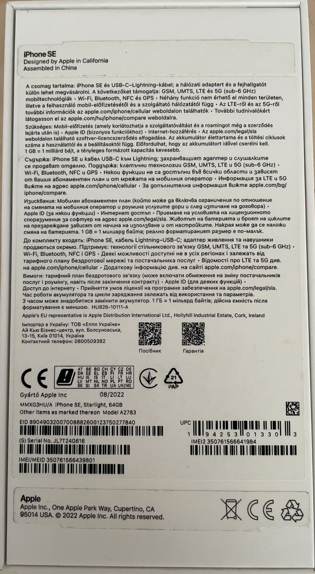Eladó egy szép állapotban lévő Apple iPhone SE, 3. generációs. 64 GB, Starlight színben, kártyafüggetlen, akku 79%-os. Egy napot simán bír normál használattal. Karcmentes elöl, hátul, szélei se kopottak.
