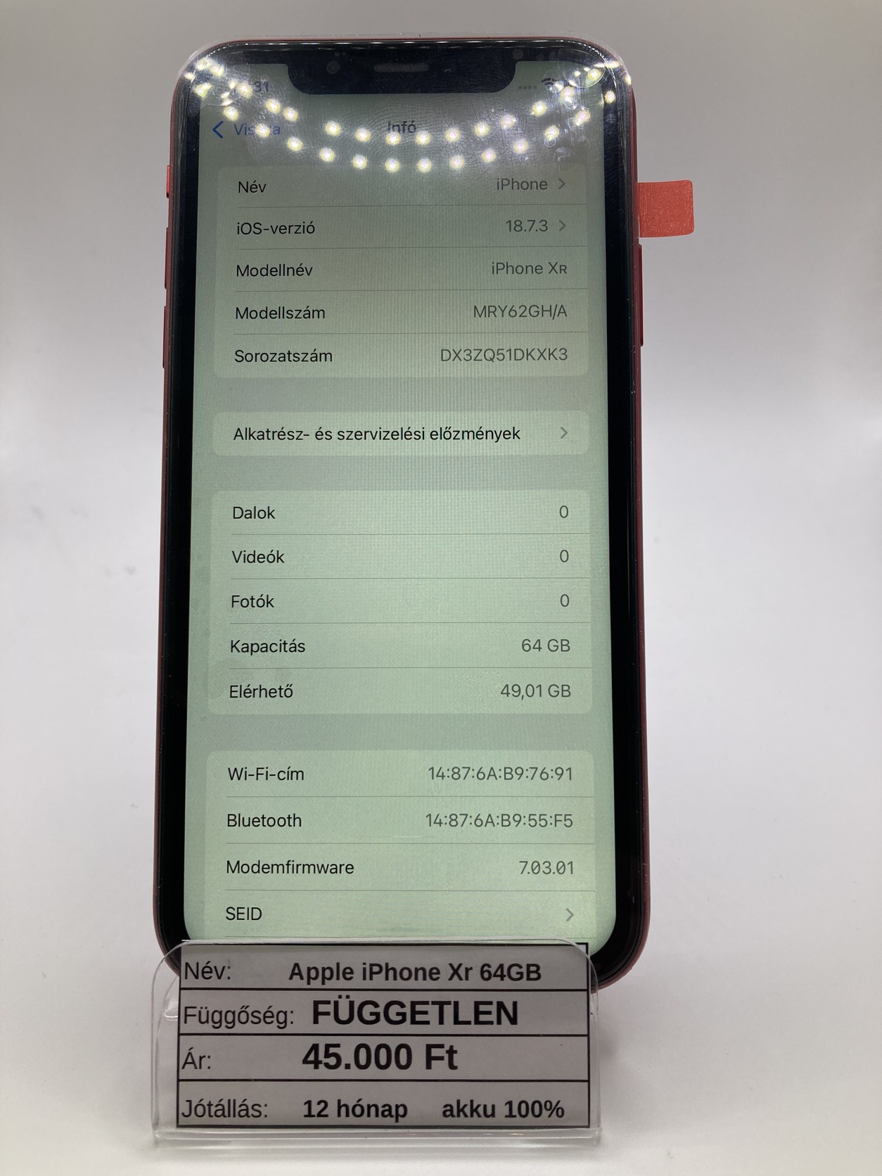 Eladó Apple iPhone Xr 64GB piros / ÚJ AKKU/ ÚJ KIJELZŐ / 12 hó jótállás