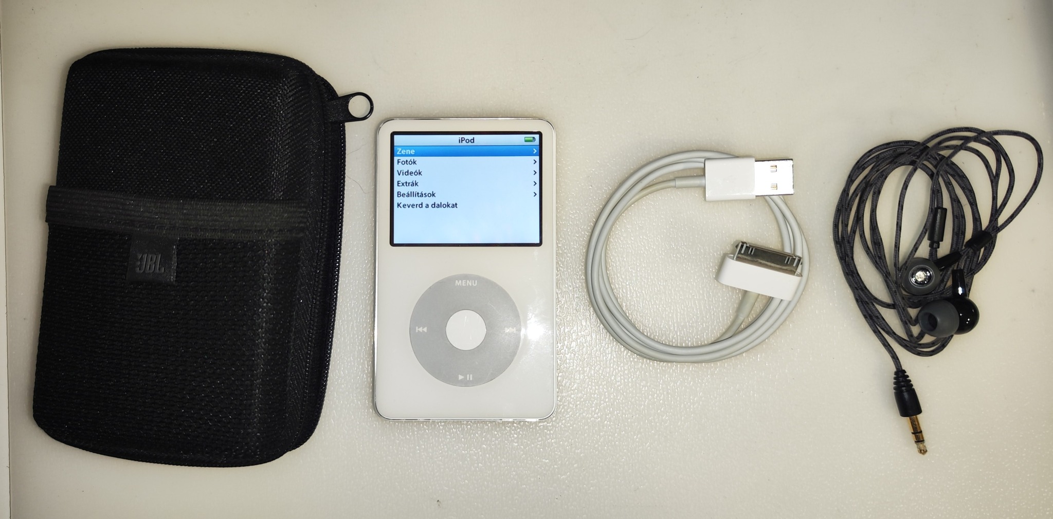 Eladó egy szép, megkímélt 2006-os iPod A1136 MP3 lejátszó jó 80GB-os HDD-vel, jó akkuval, USB kábellel, JBL tokkal és JBL fülhallgatóval.