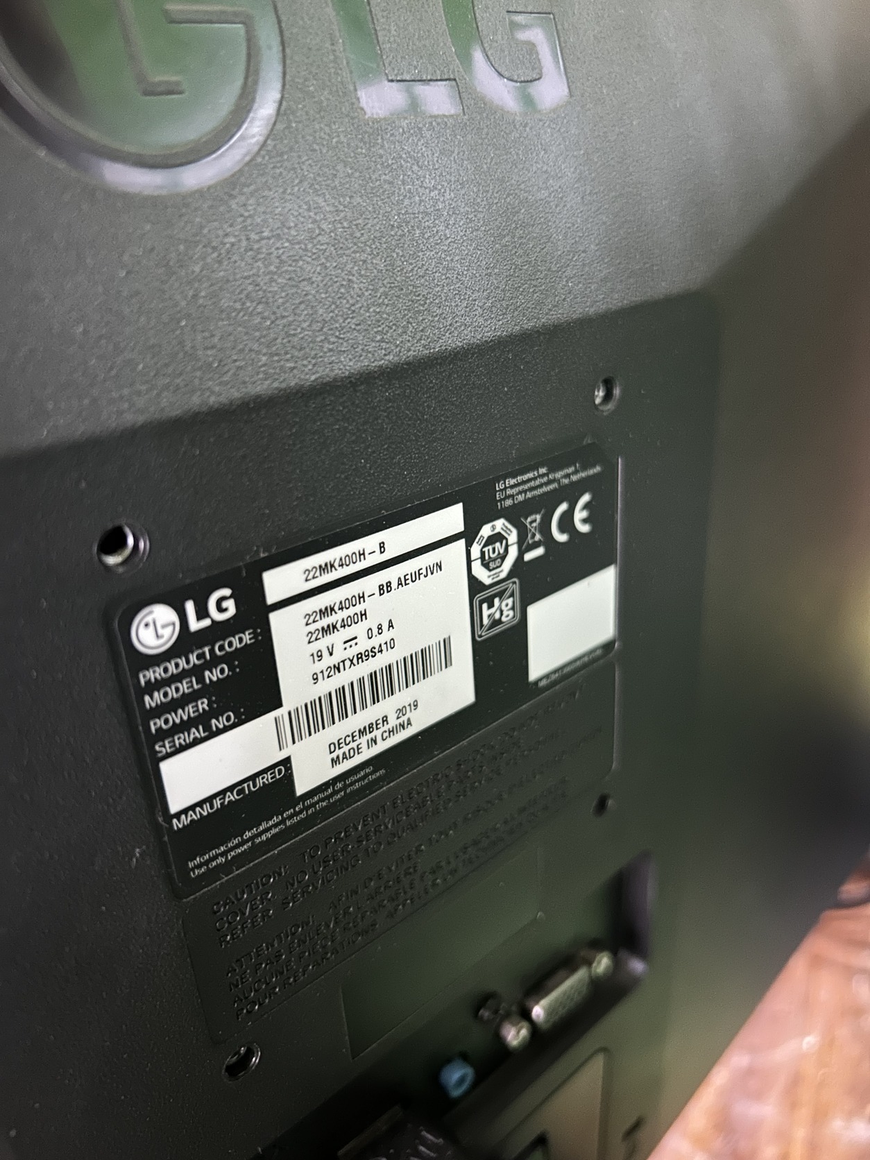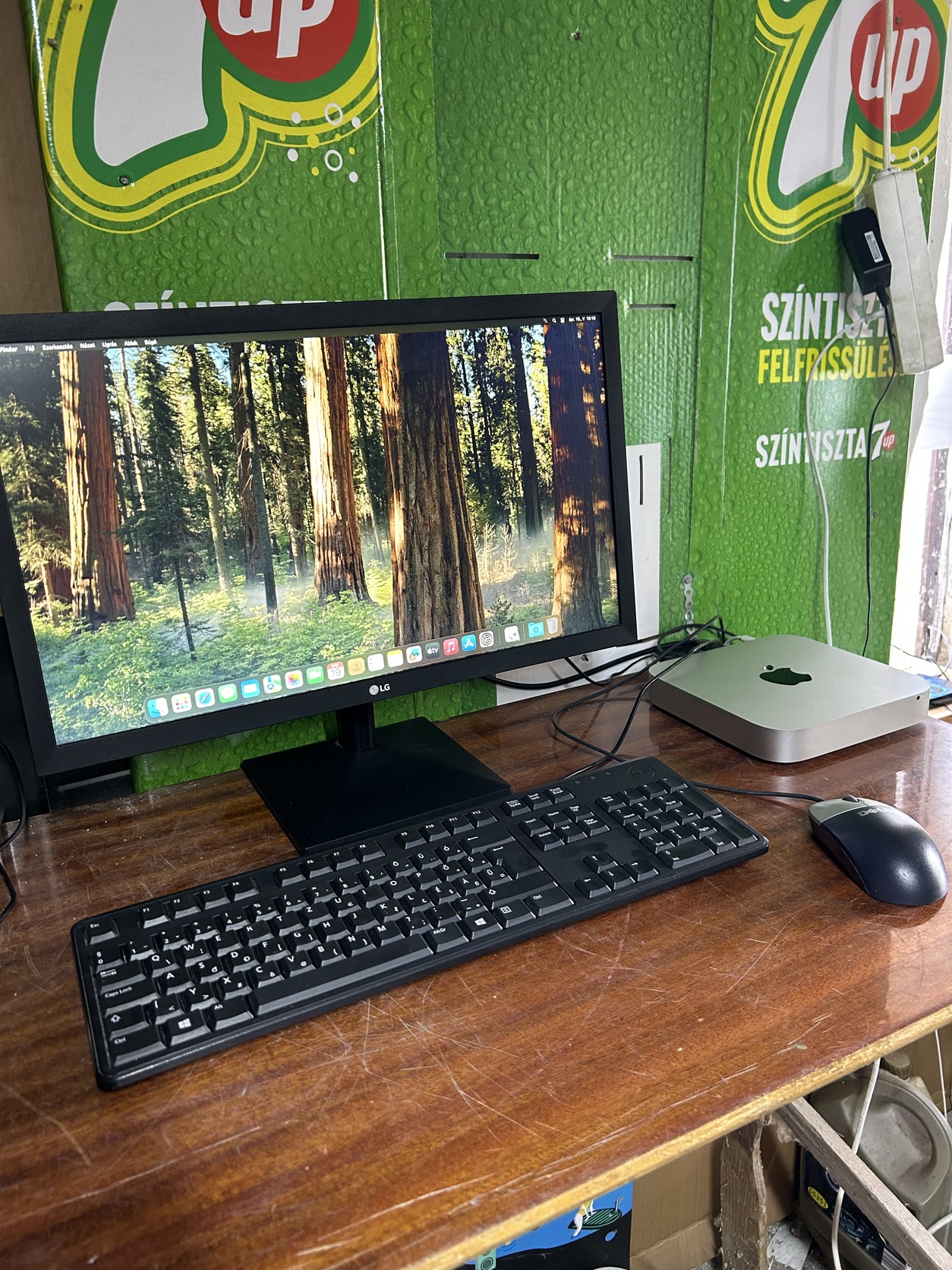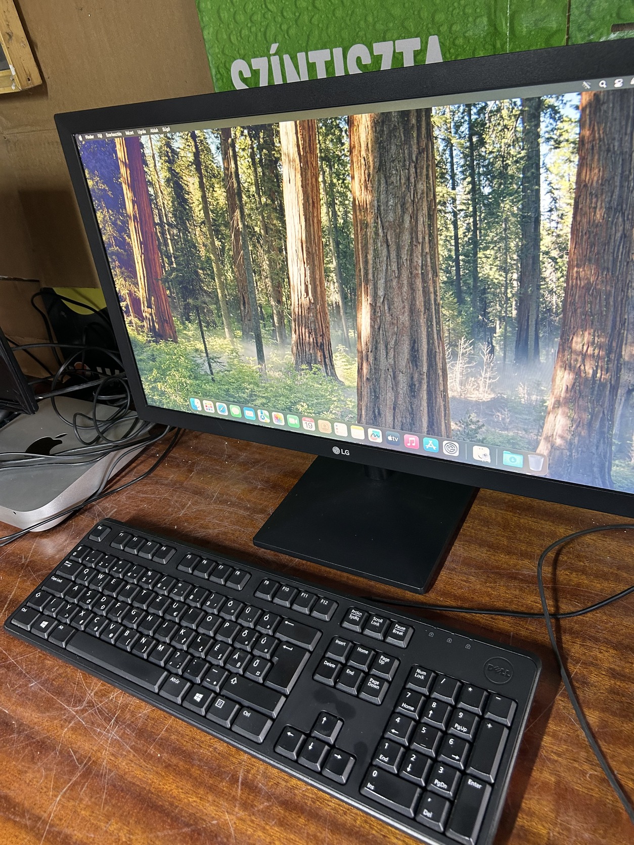 Táp kábel jár a gép mellé , valamint egy LG 22MK400H-B típusú , 22” colos , Full HD , LED monitor , egér és billentyűzet .