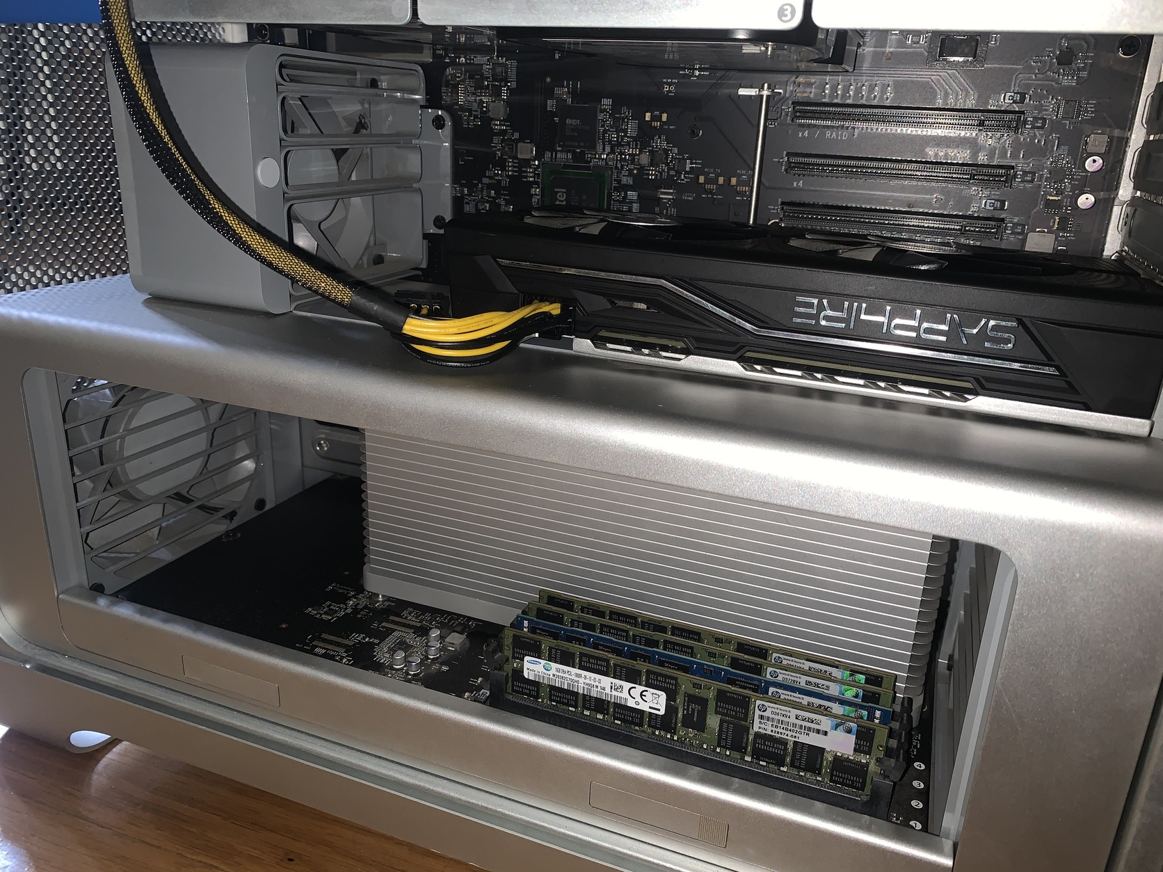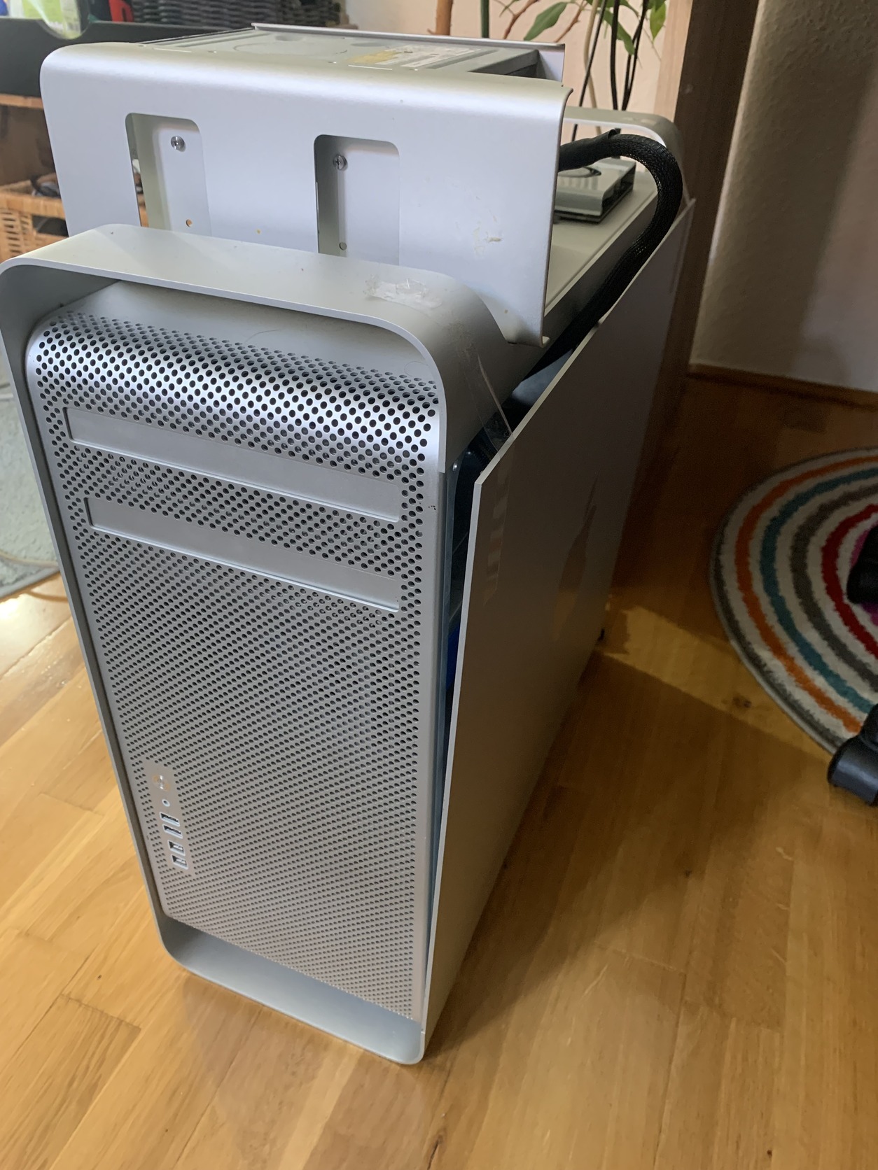 Eladó mac pro 5.1 ami 4.1 volt csak át lett alakítva (ugyanazok az alkatrészek vannak benne, csak firmware frissítést kellett csinálni). Az adatok a képeken láthatók, került a gépbe az rx 580 tápellátása miatt pixlas mod, ami miatt kikerült a cd-rom meghajtó és nem lehet az oldalát sem miatta visszatenni. Teljesen hibátlanul működik, jelenleg win 10 van rajta de vissza tudom rá rakni a mac os-t. Mérete miatt nem tudom postázni a gépet, átvehető személyesen Kecskeméten. Az ára 120 ezer forint. Csere nem érdekel.