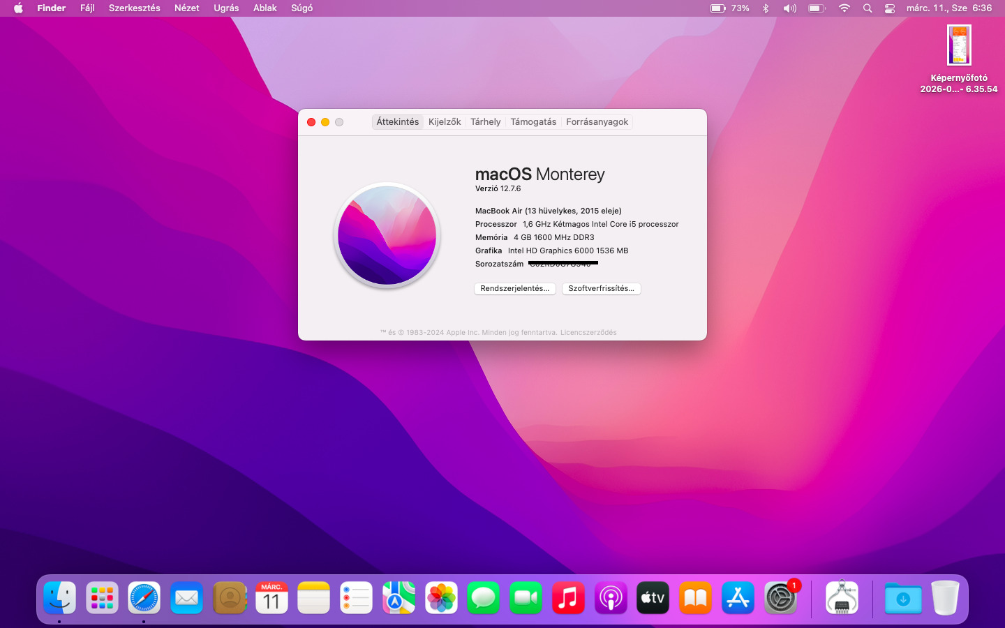 Rendszer: macOS Monterey