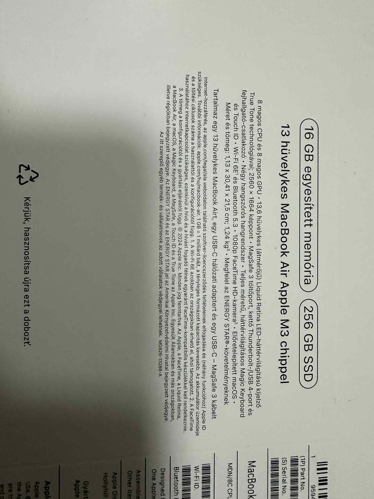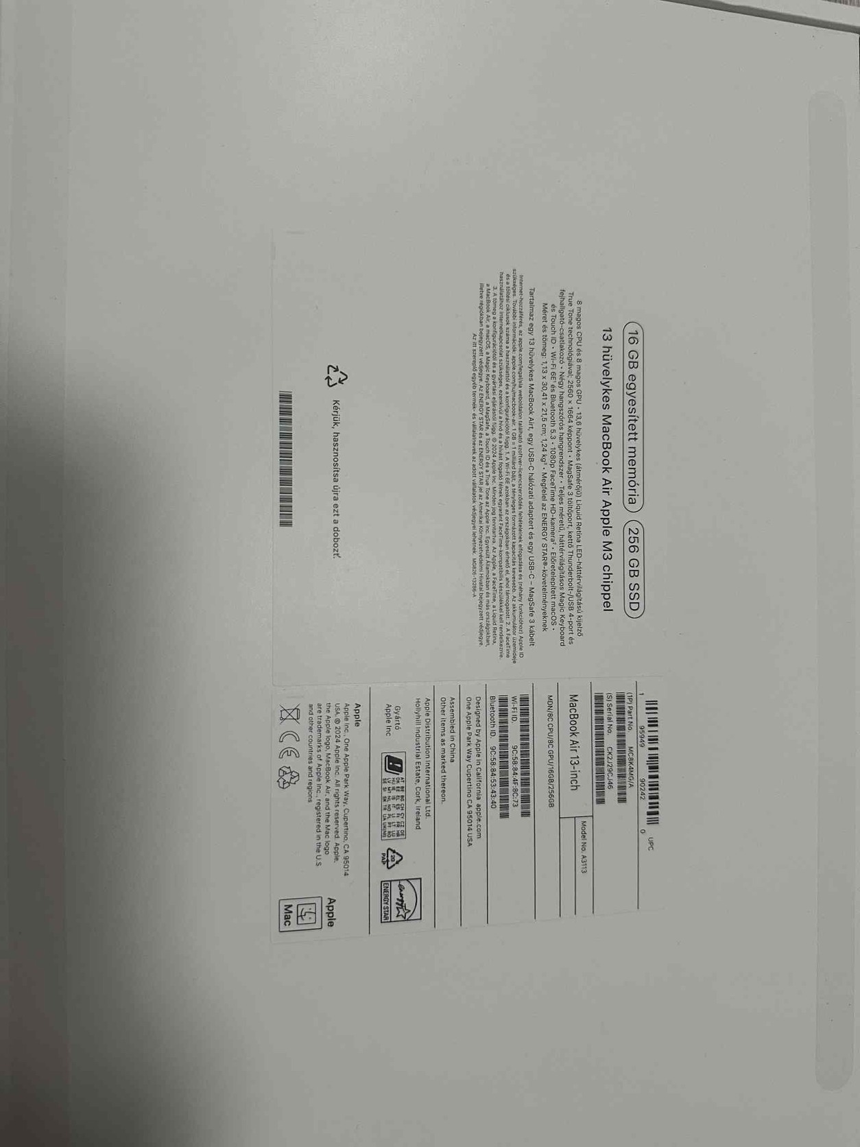 Apple MacBook Air 13 M3 chip 256 GB SSD 16 GB RAM