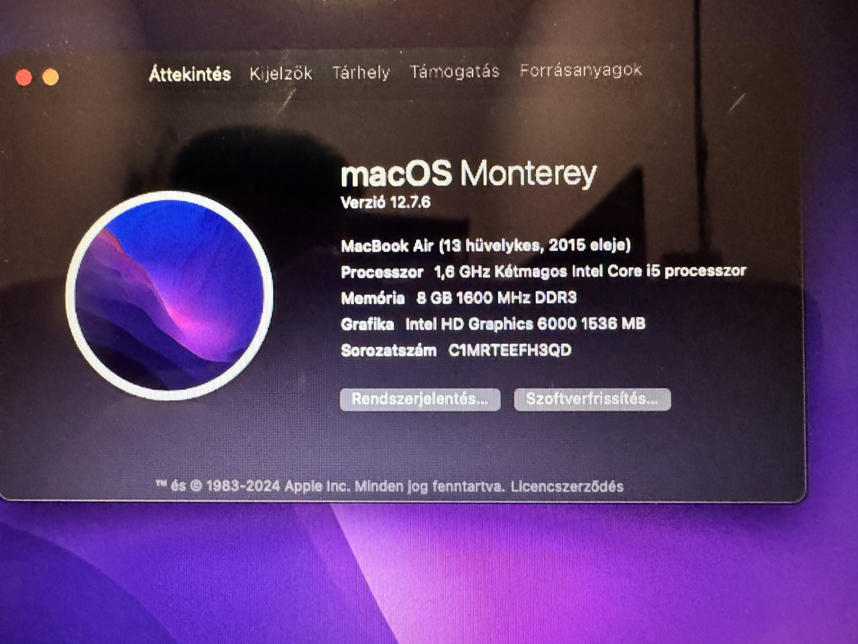 MacOS monterey rendszer fut rajta, én tanulásra,filmezésre,f1 nézésre használtam, de egy ideje már nem használom.