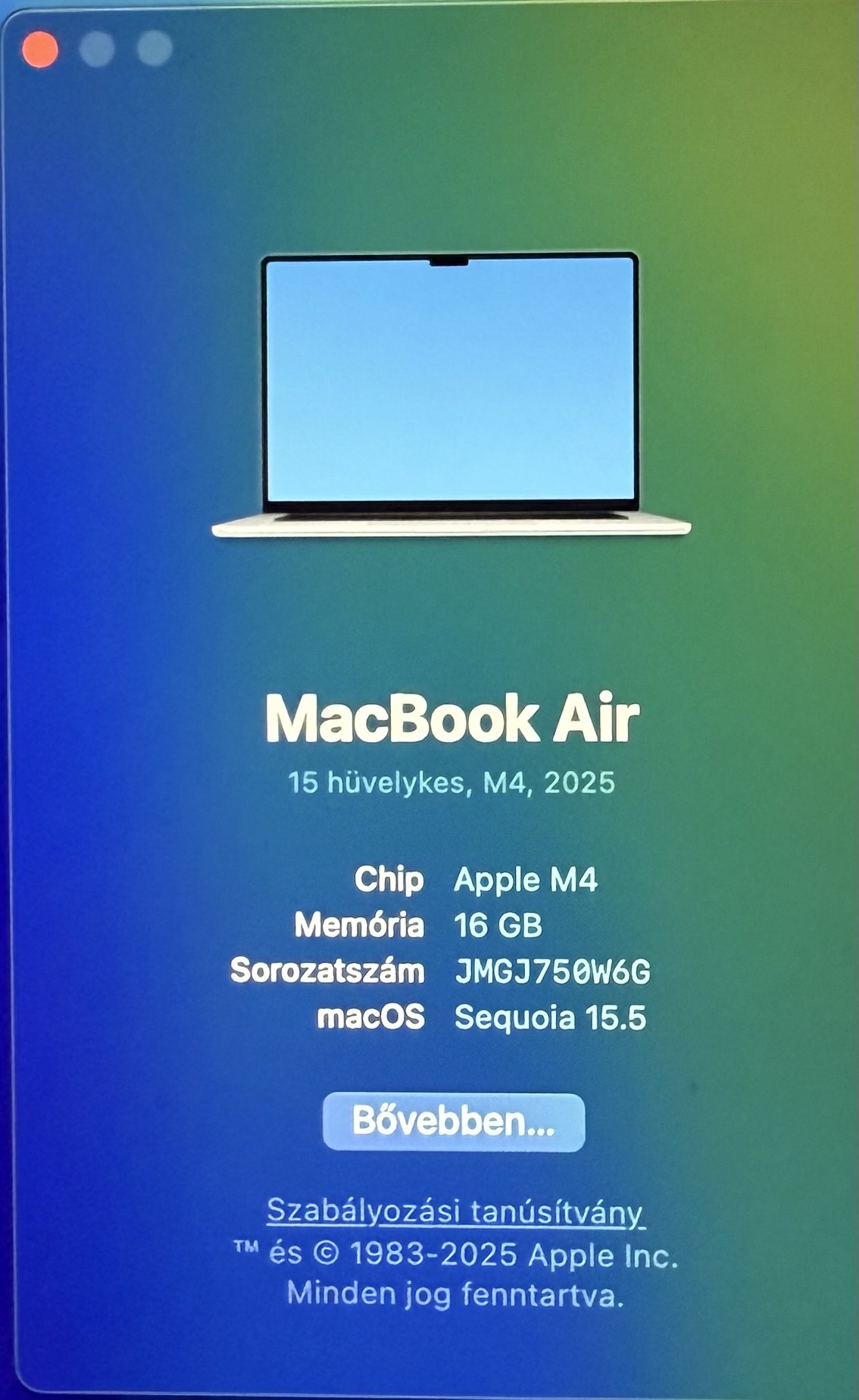 Eladó a címben említett: MacBook Air 15.3” M4 16/256GB Égkék színben!