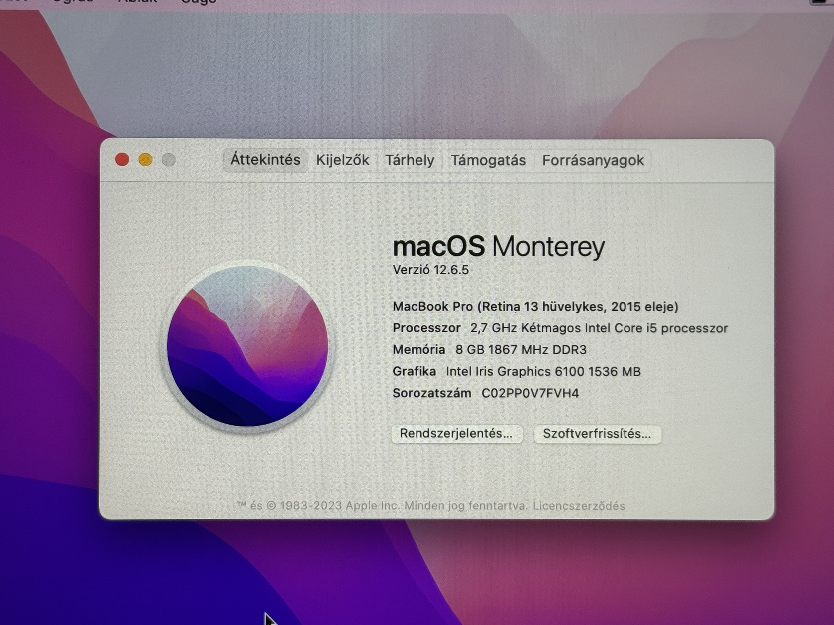 Apple Macbook Pro i5-ös processzorral, 2015-ből.