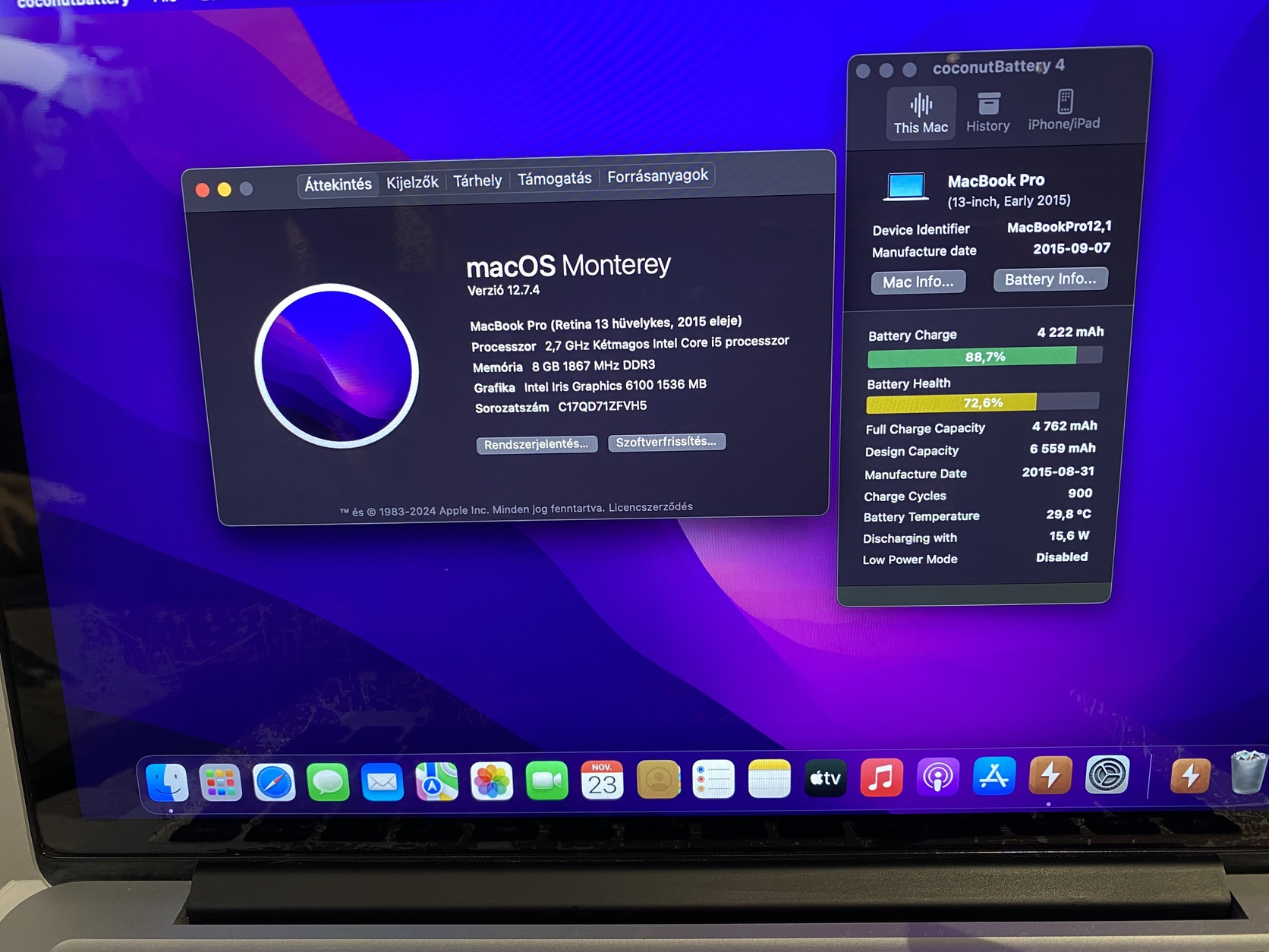 Akku 72% -os 900 töltési ciklussal.