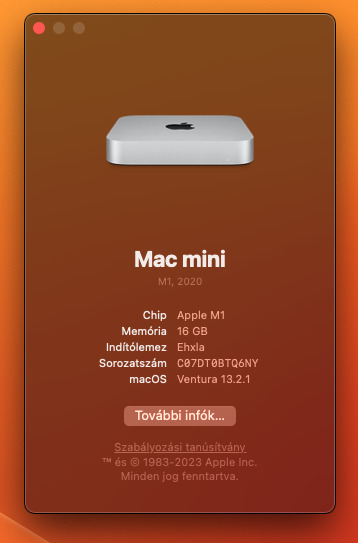 Eladó hibátlan állapotban Apple MacMini M1, 8 magos CPU-val és 8 magos GPU-val.