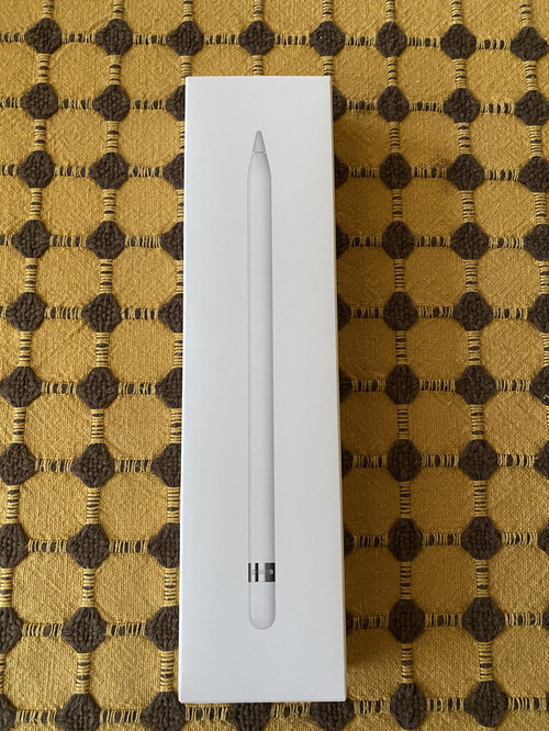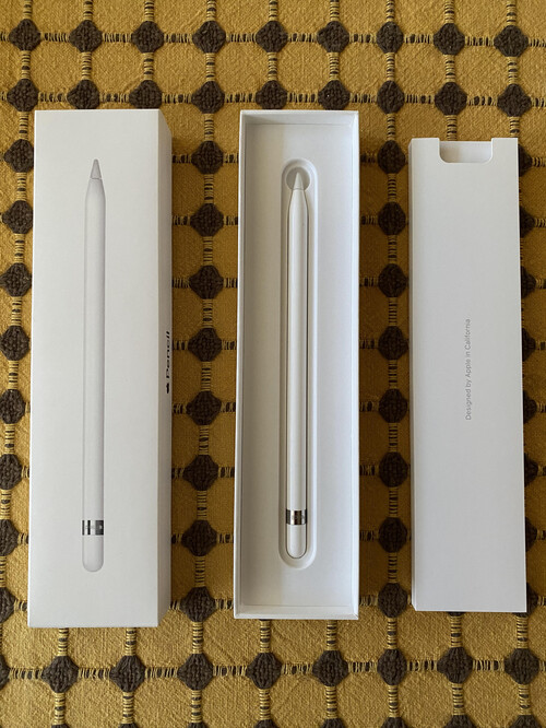 Egyszer használt első generációs Apple Pencil eladó dobozában tartozékaival.