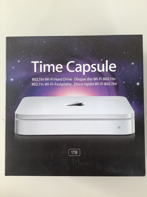 Eladó a címben említett harmadik generációs Apple Time Capsule. Eredetileg 1 TB-os volt, de elromlott benne a merevlemez, így egy Airport Extremeként volt használva. A SATA port működőképes, egy merevlemez telepítésével újra használható Time Capsuleként. A termék talpa nincsen visszaragasztva, ezért könnyen szerelhető. Egy ideje már csak a dobozában áll.