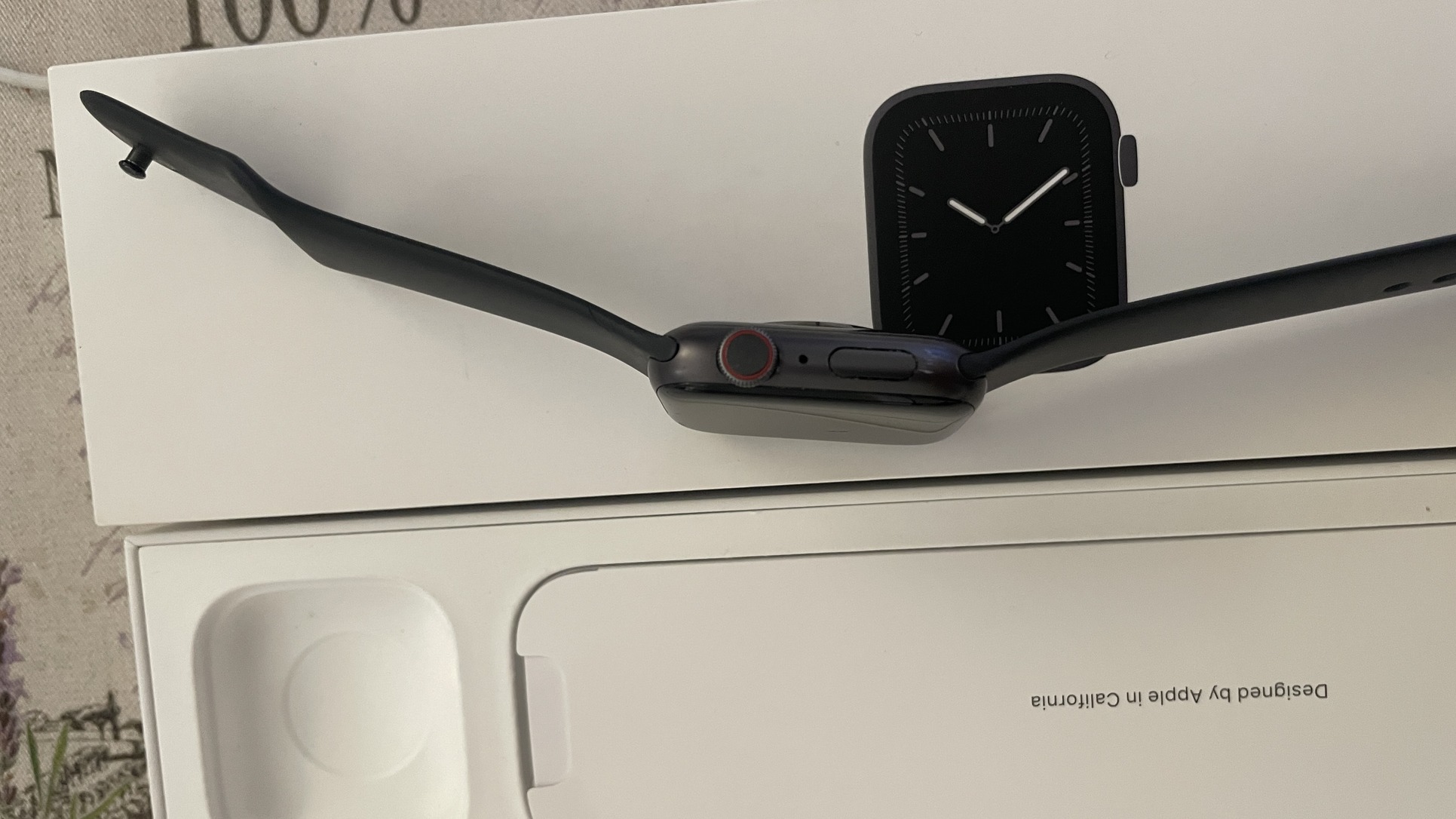 Eladó normál állapotban lévő Apple watch 5 44mm cellular dobozával, töltőkábelével.