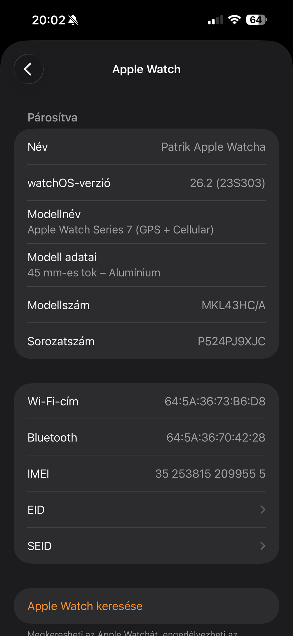Apple Watch 7 45mm GPS+Cellular ezüst