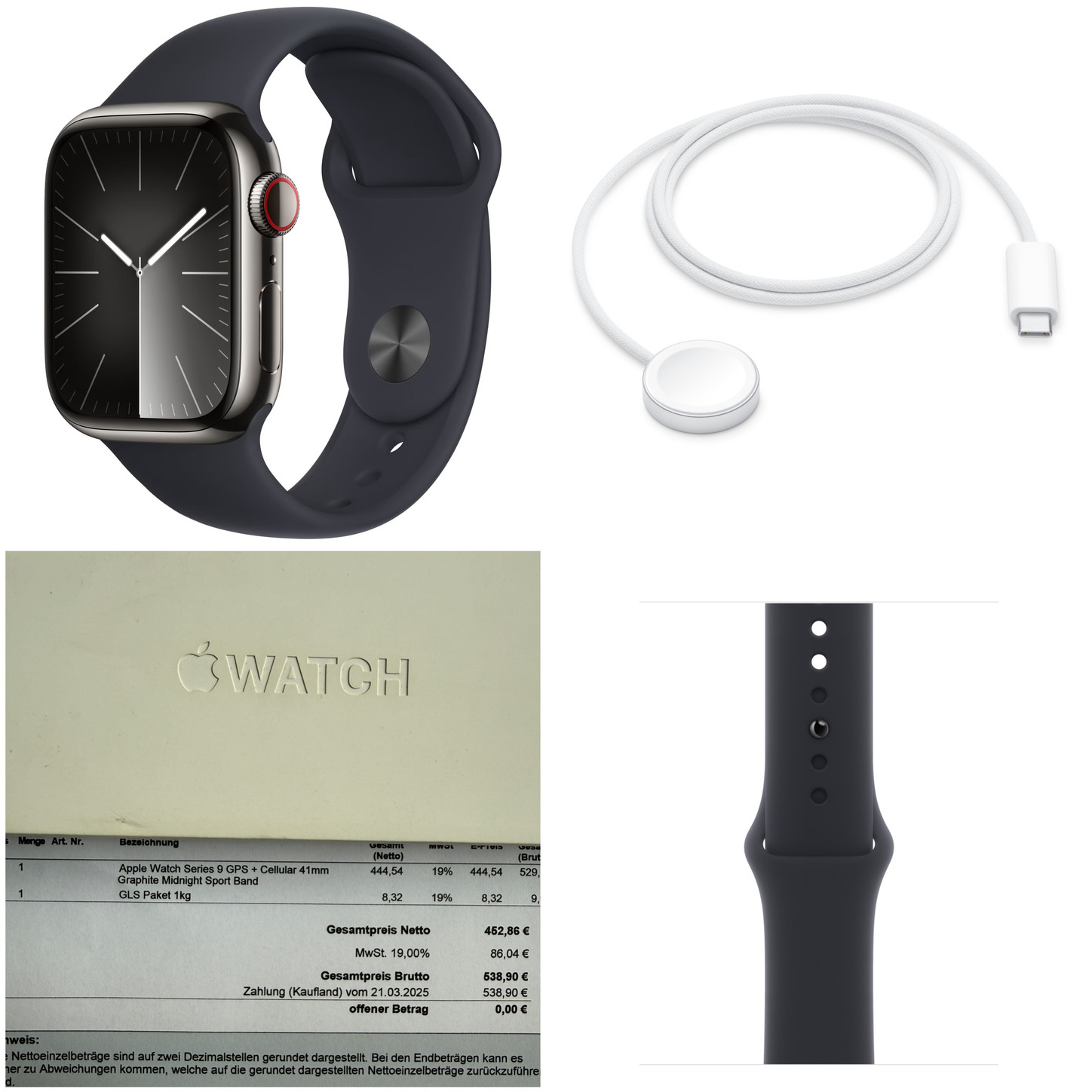 Eladó Apple Watch 9 41 mm GPS+Cellular, Graphite acél tokos változat, Midnight Sport szíj (M/L). Új, aktiválatlan, garanciás, számlával!