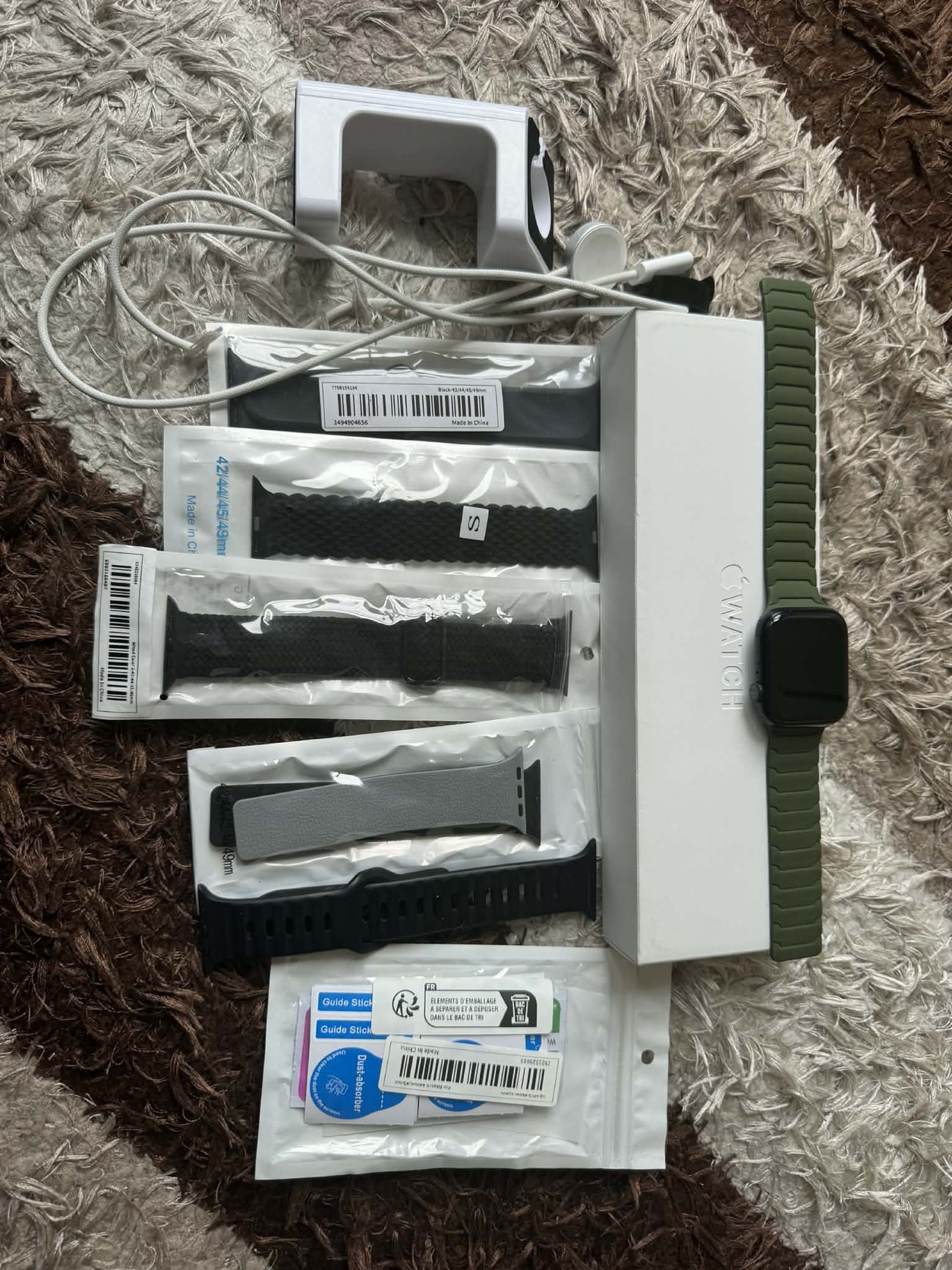 Szép állapotú, gyári dobozaval , gyári szijjal, es több masik szijjal. A kijelzőn fólia van, illetve jár mellé több kijelző fólia, valamint egy töltő “állvány”.