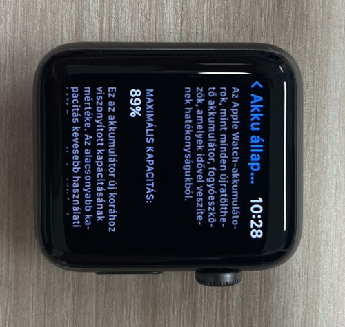 Akku: 89%, a saját beállításaim alapján 1,5 napot kényelmesen kibír.