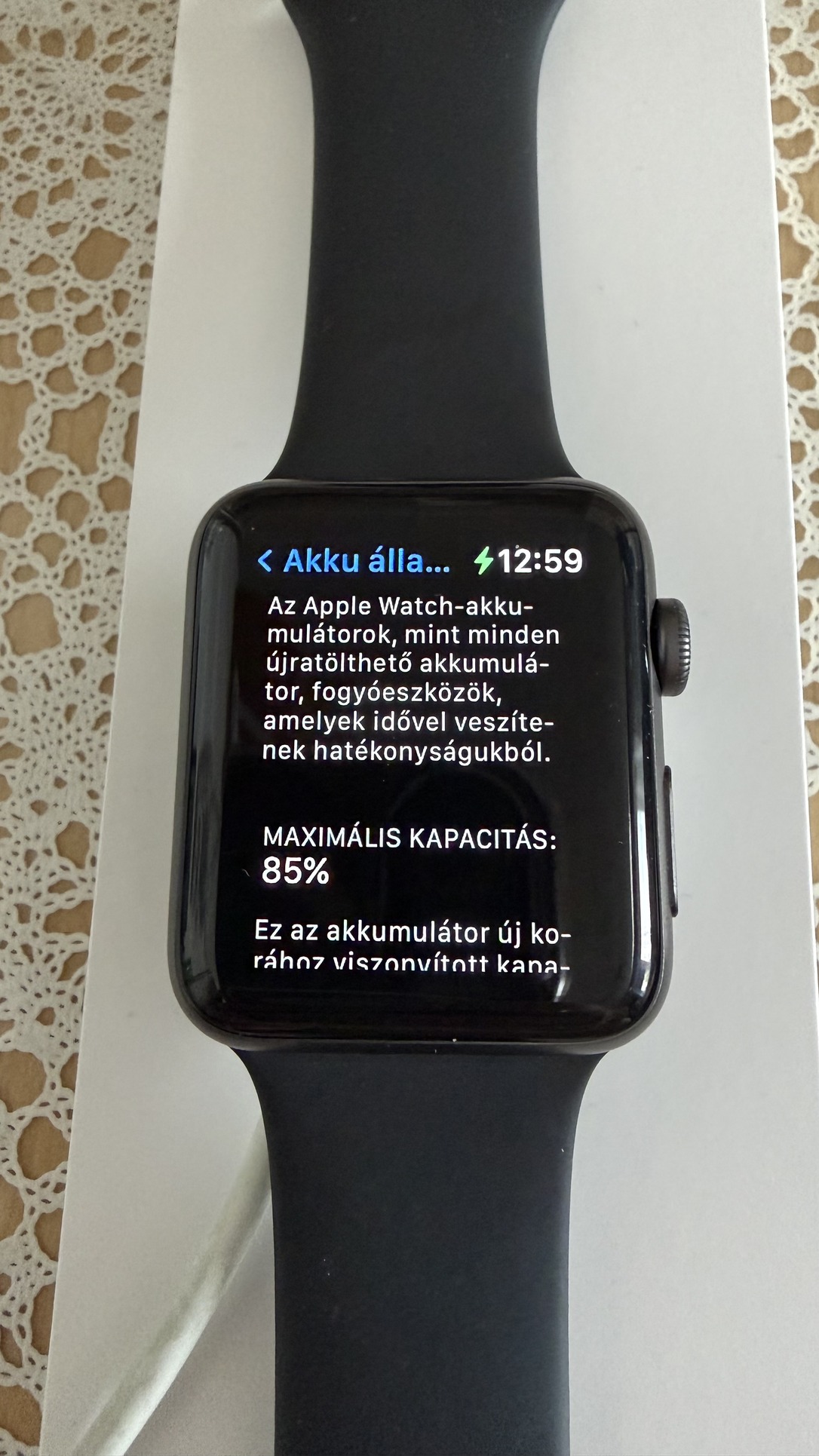 Hibátlanul működő Apple Watch S3 eladó, 42mm GPS, fekete színben, dobozában, tartozékaival, mint töltő, és szíj két méretben. Kijelző nem karcos, nem törött, használatból eredő kopás természetesen azért van az órán. Eredeti akkuval (akku 85%-os) soha nem volt megbontva, szervizelve.