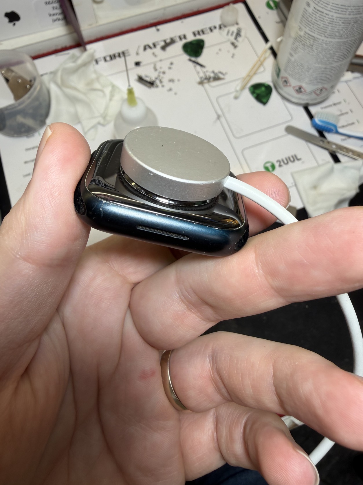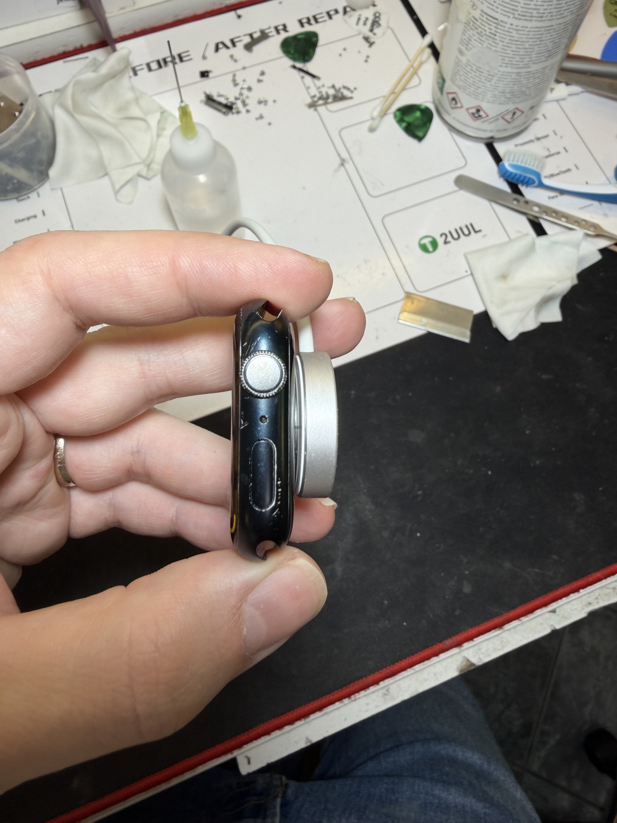 Az óra karcos, próbáltam fotózni.