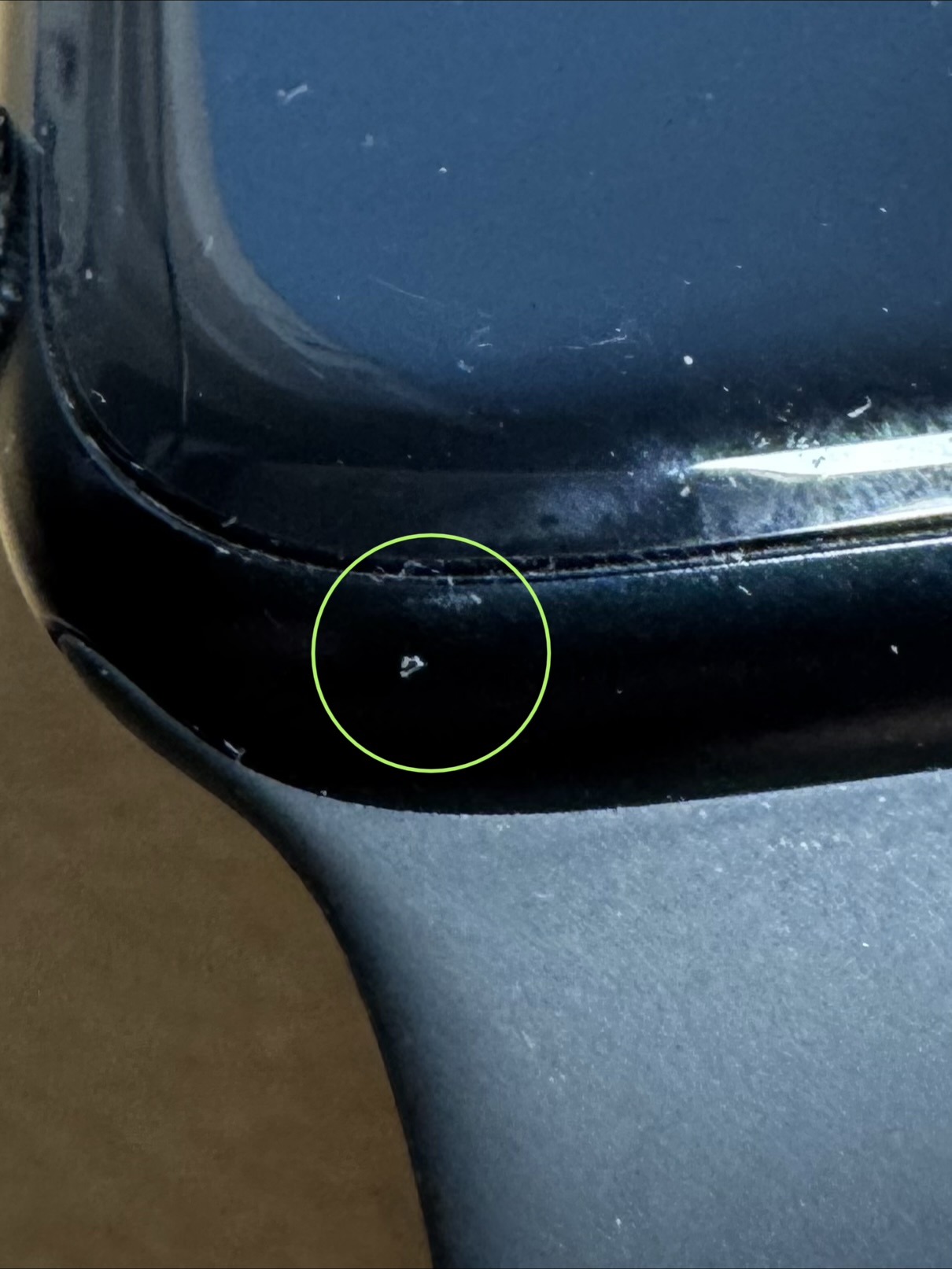 0.1mm potty a tok szelen (foton megprobalom megmutatni) a kijelzon kis karc talalhato (igy vasaroltam)