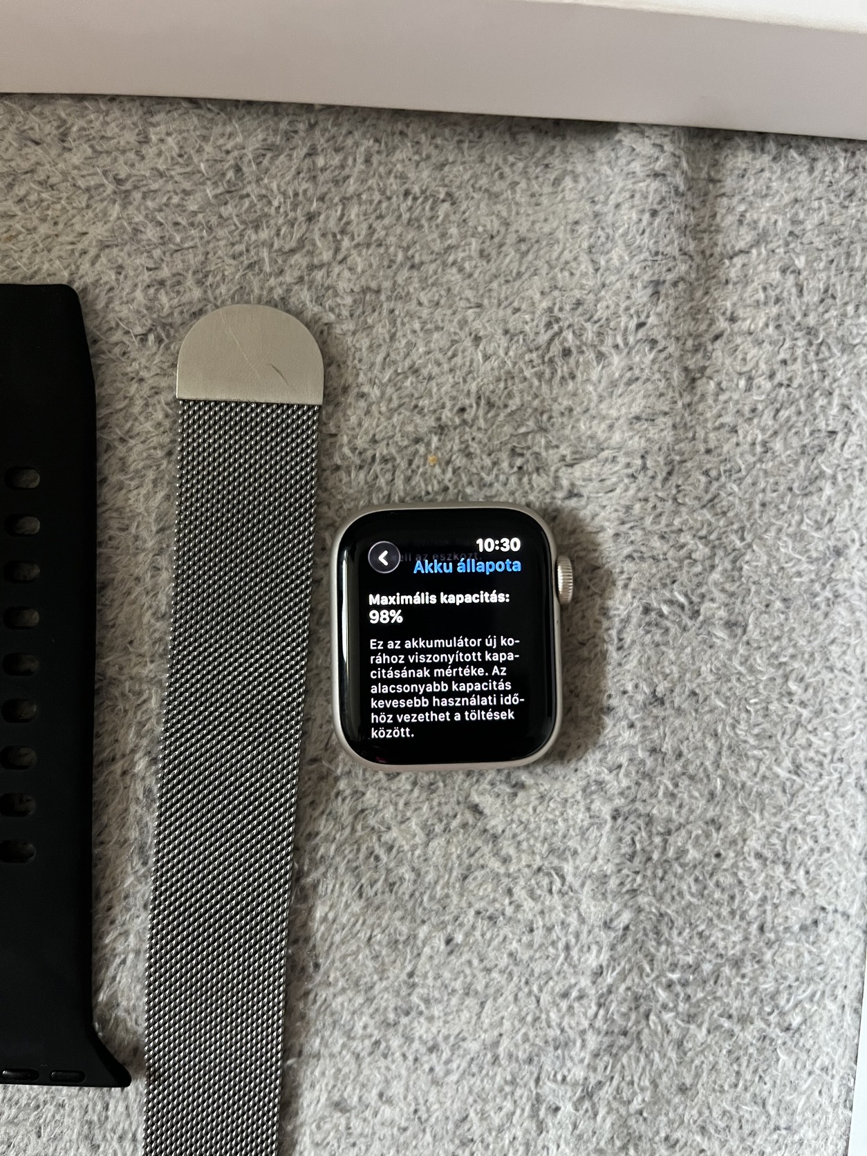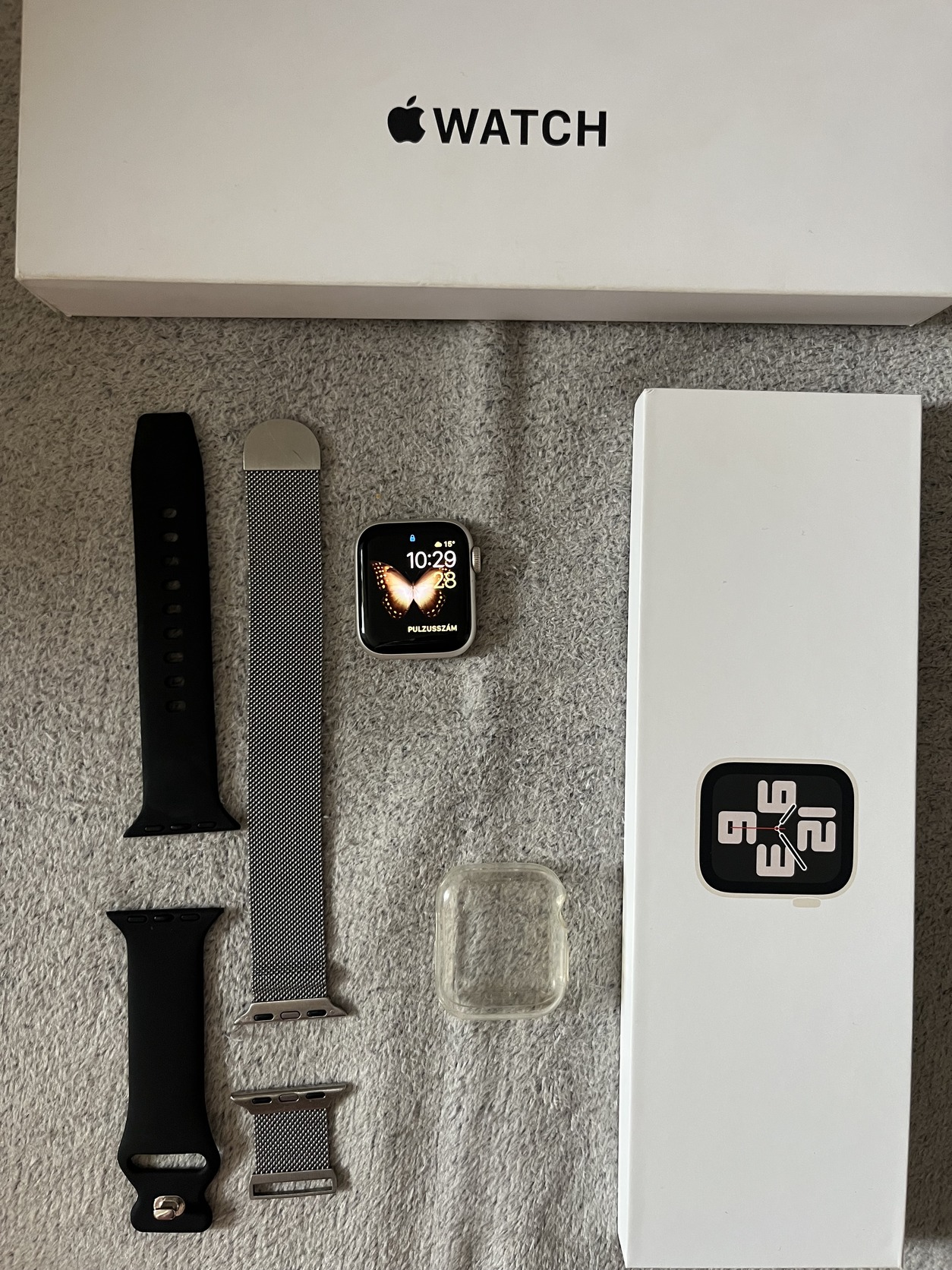 Eladó a képen látható óra. 40mm, 2 szíjjal, dobozban, töltővel plusz egy tokkal amiben mindig hordva volt. Mivel utazós munkám van előre egyeztetett helyen lehet személyesen átvenni, előre utalás esetén pedig foxpost.