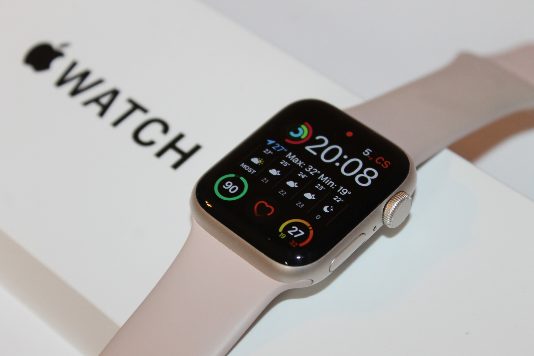 Hibátlan külső és belső állapot. Nem volt szervizben, 90%-os akkumulátorral. Gyári Rose Gold szíjjal adom.