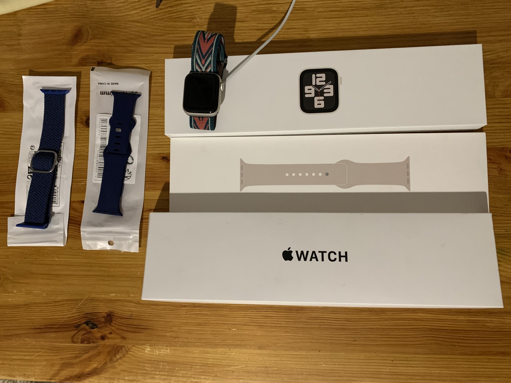 4 szíj ajándékba, dobozában , töltőkábelével.