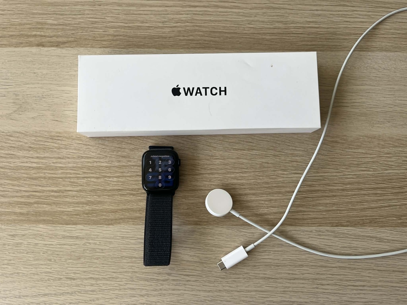 Dobozával, töltőkábelével.