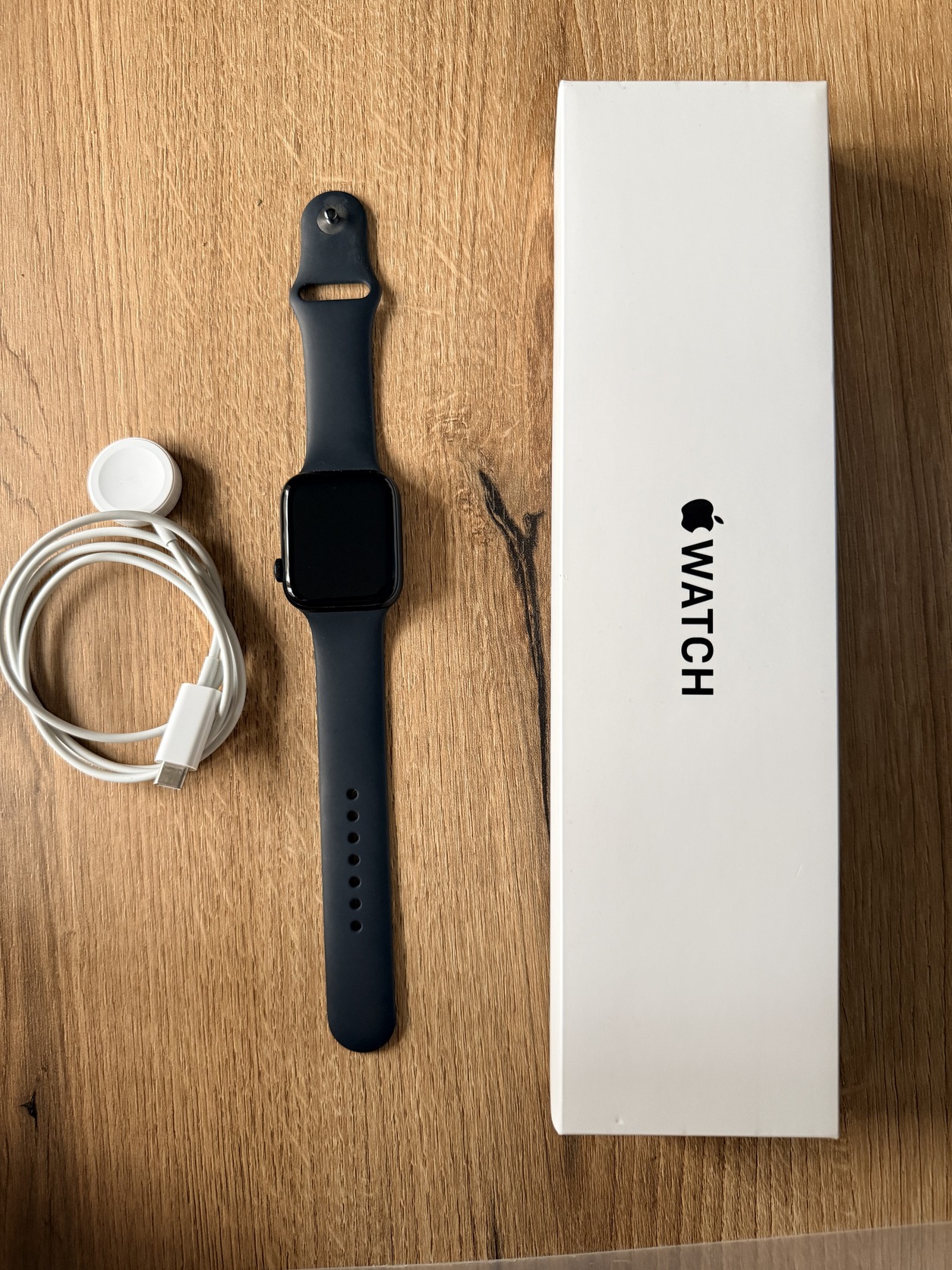 Kihasználatlanság miatt eladó, újszerű állapotú, 100%-os akkumulátor állapotú Apple Watch SE (2nd Gen) 44 mm-es okos-óra. (midnight alu case, mindnight sport band)