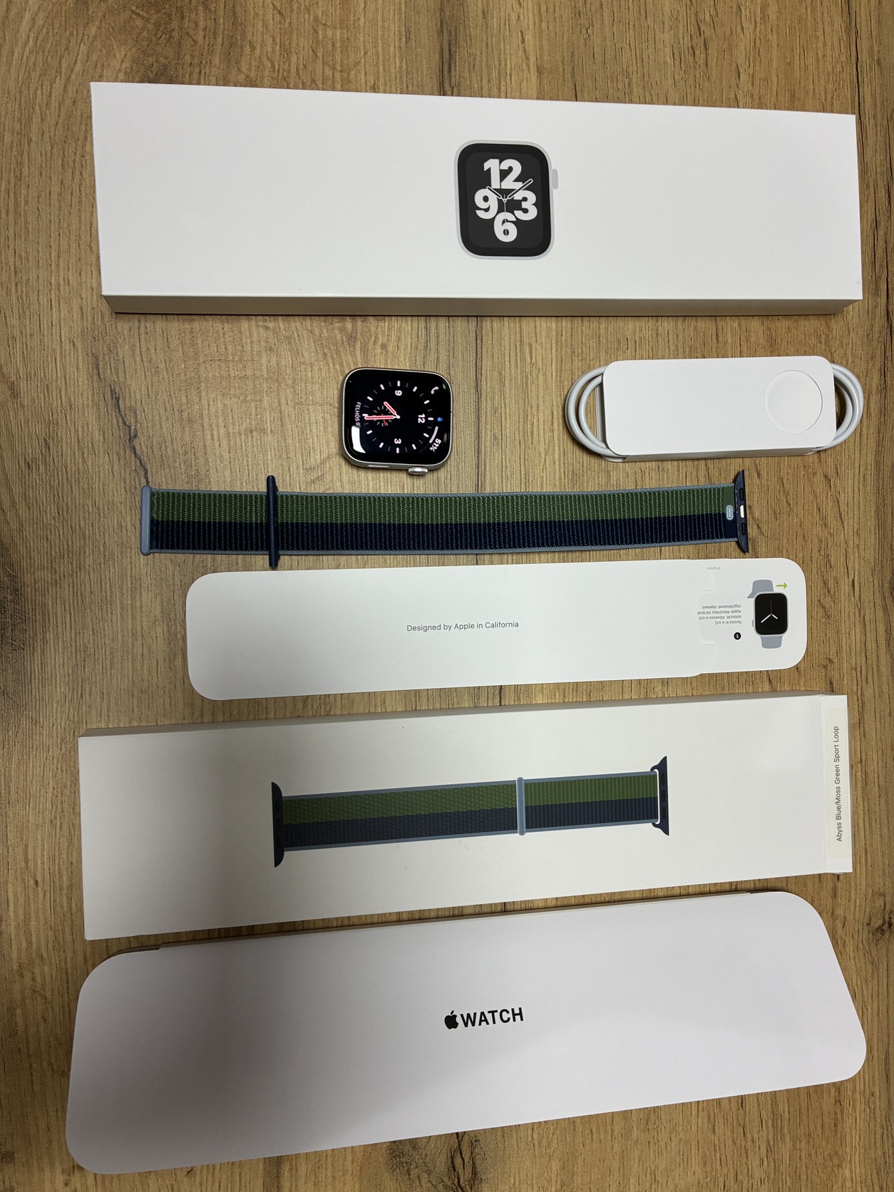 Apple Watch SE 44mm GPS + E-SIM (Cellular) színe Ezüst szürke (csillagfény) karcmentes állapotban akkumulátor 82%. + 2 db gumi szíj.
