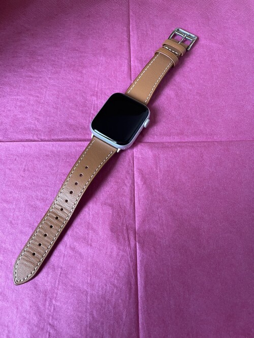 Barna bőr szíj van hozzá és a gyári fehér szilikon szíj.