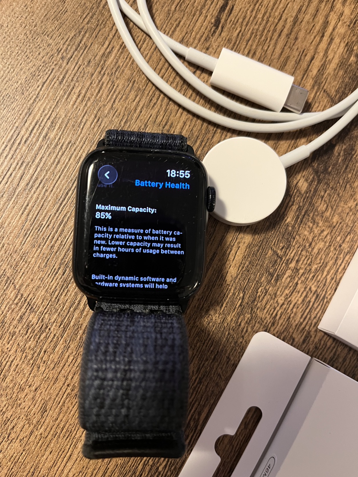 MRE93QH/A Apple Watch SE (Gen 2) 44mm Midnight Mid SB M/L GPS Töltő Eredeti dobozok + Black/Blue Nike Sport Loop