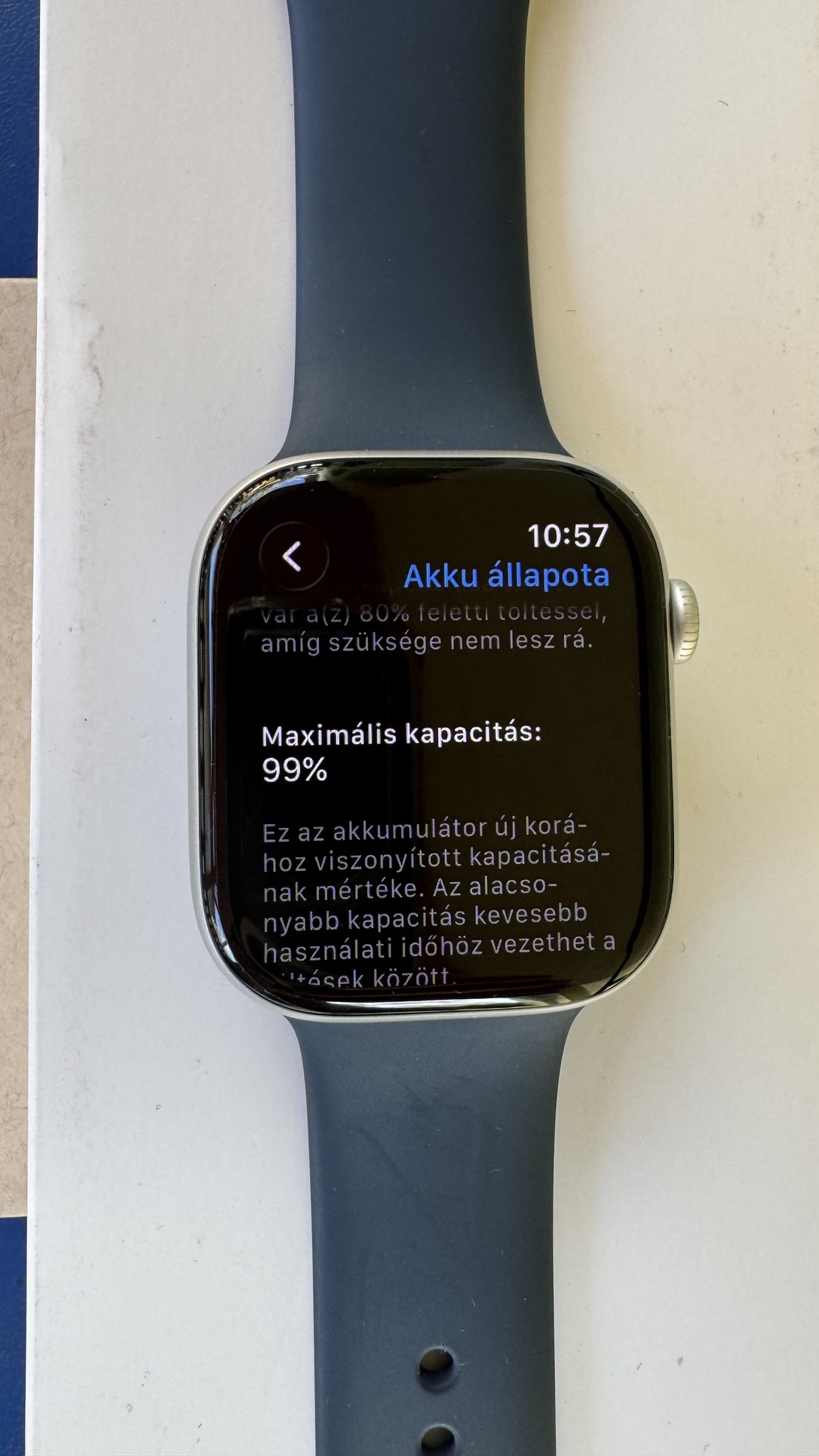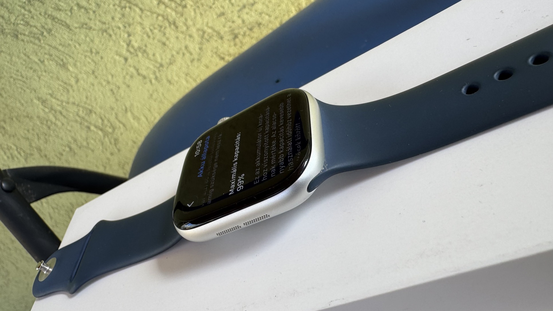 Az óra nem felújított “ismeretlen előéletű”, hanem hivatalos Apple csere, így műszakilag gyakorlatilag új.