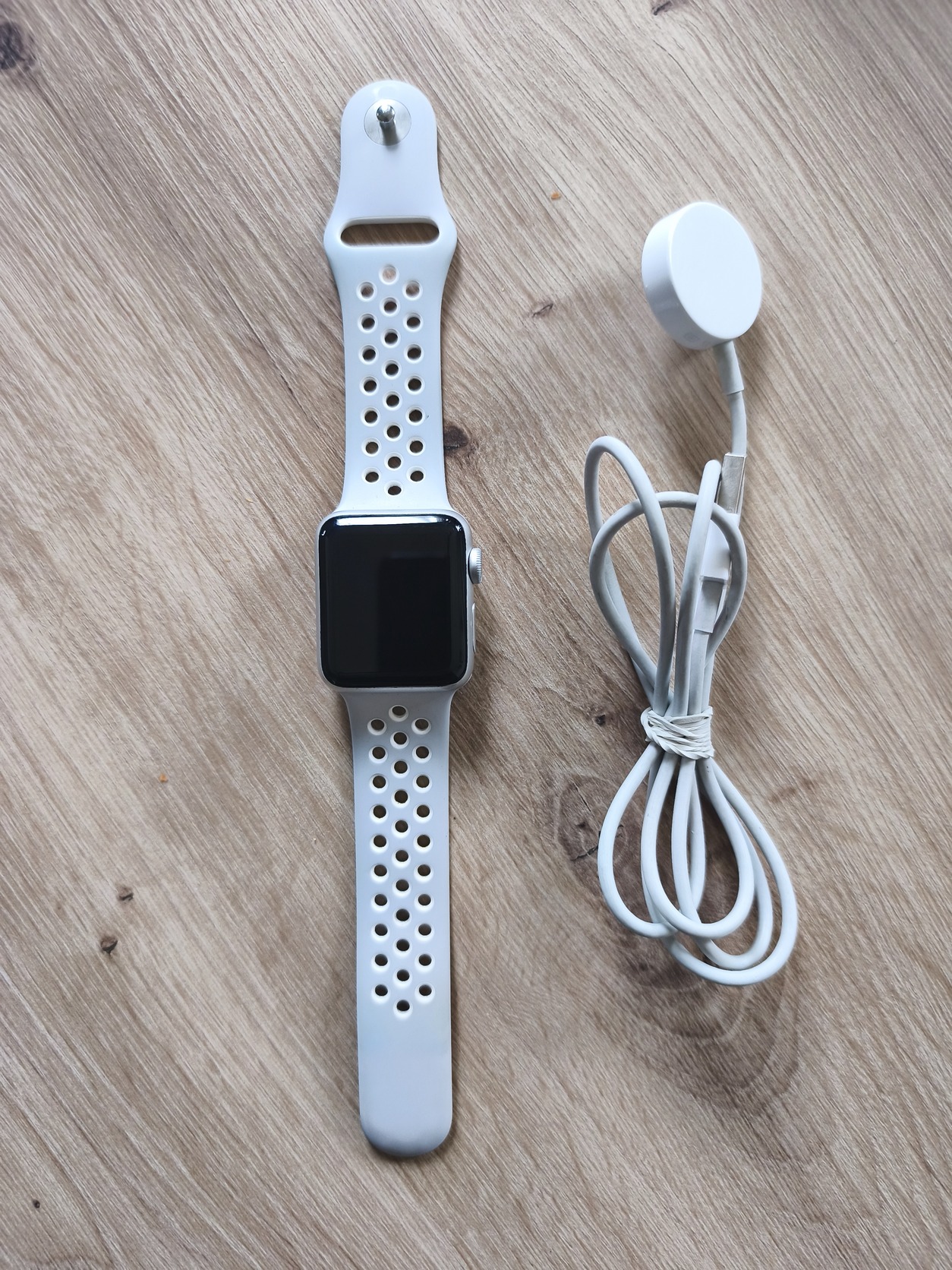 Szép állapotban, műszakilag rendben, decemberben vásárolt /cserélt új akkumulátorral. Alumínium ház, fehér szíjjal, saját töltővel. Ajándék fekete óraszíjjal.